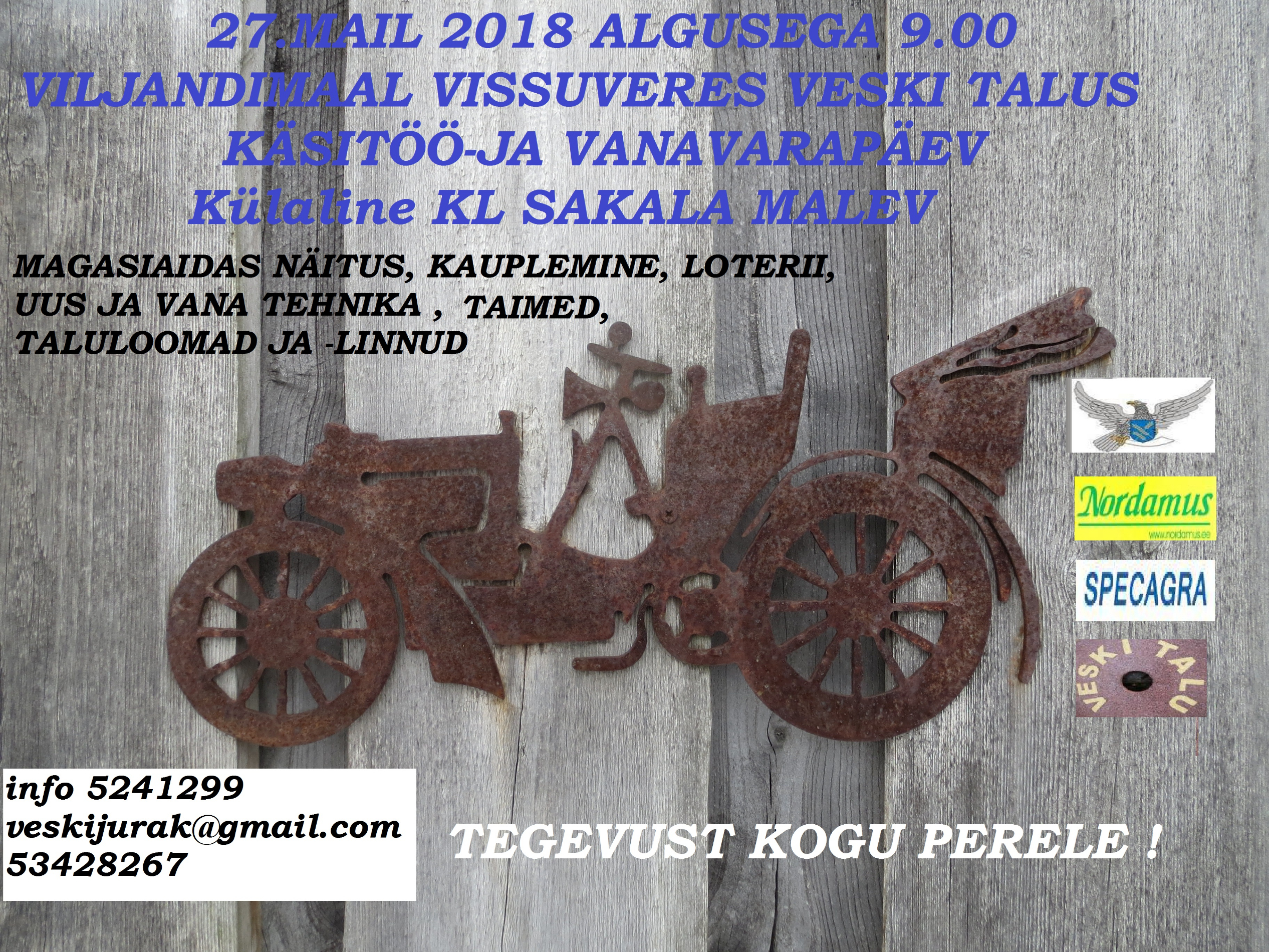 29.mai 2016 toimub Käsitöö-ja vanavarapäev Veski talus.Lisaks traditsioonilistele kauplejatele on ka oodatud SEADUSKUULEKAD militaarihuvilised.