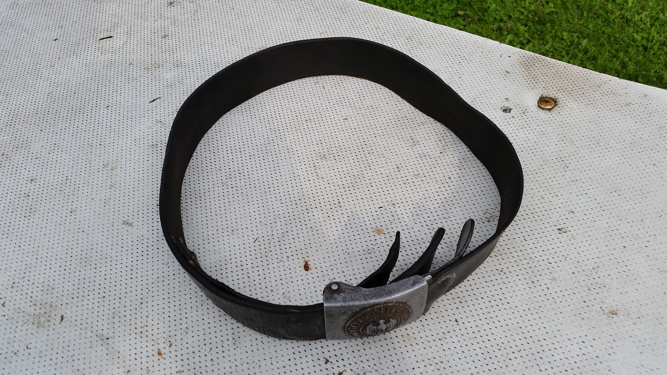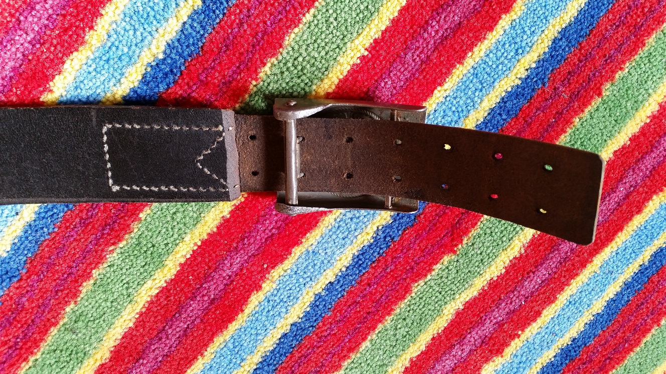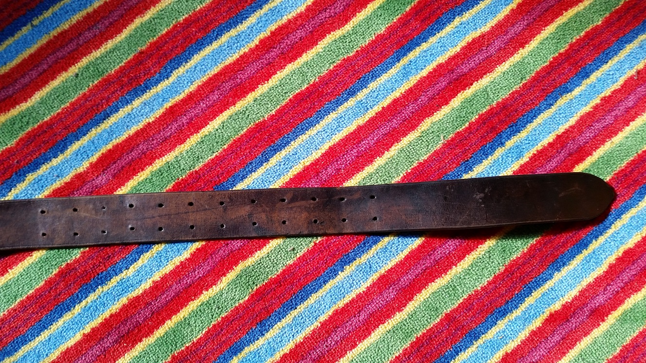 Seisukord piltidel. Nahk heas korras, esineb pindmisi pragusid ning rihma keel veidi räsida saanud, muidu TIP-TOP. Rihma pikkus 90 cm, laius 4.3 cm. Hinnaks 50.-