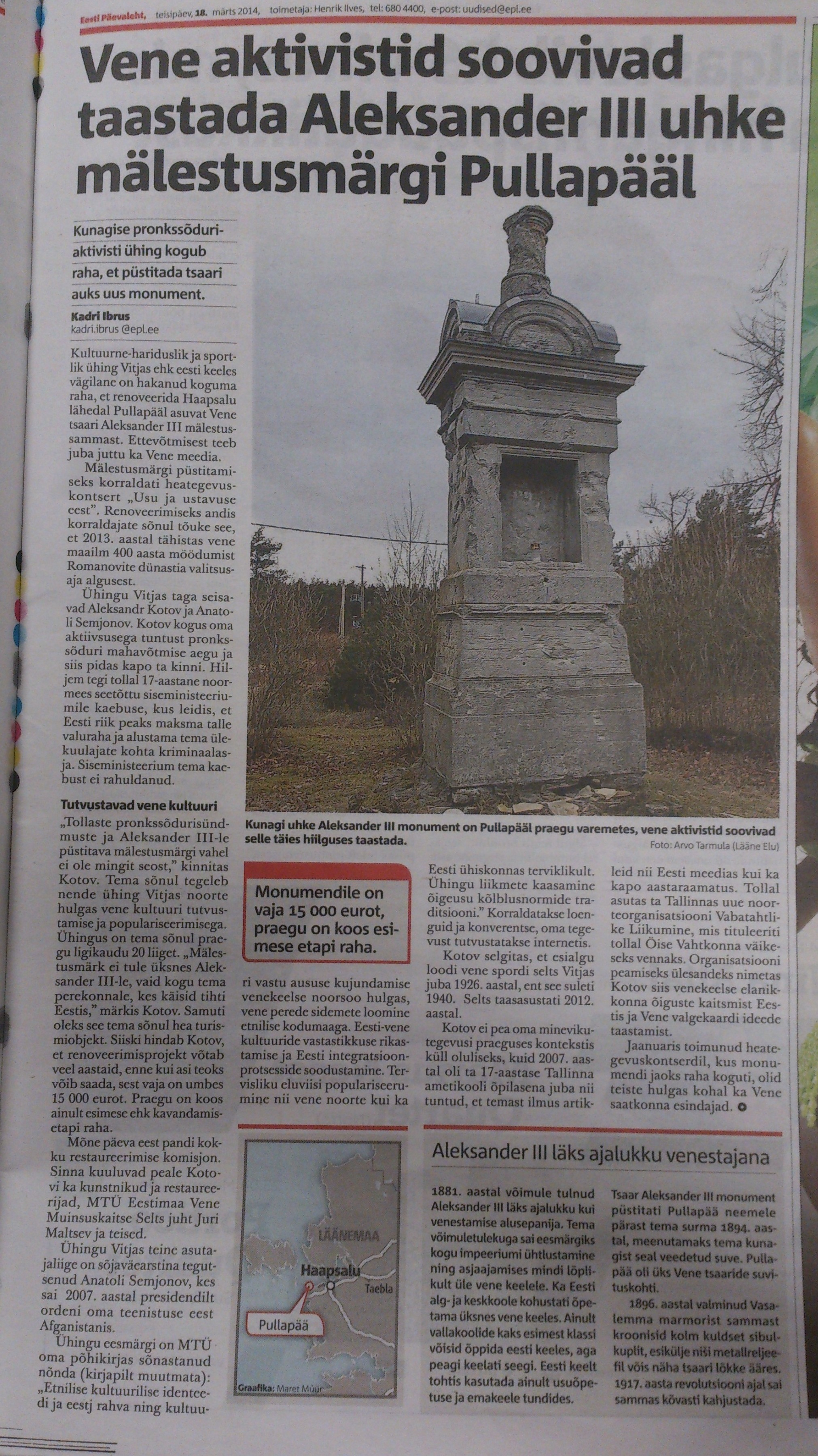 - Teema: Aleksander III mälestusmärk