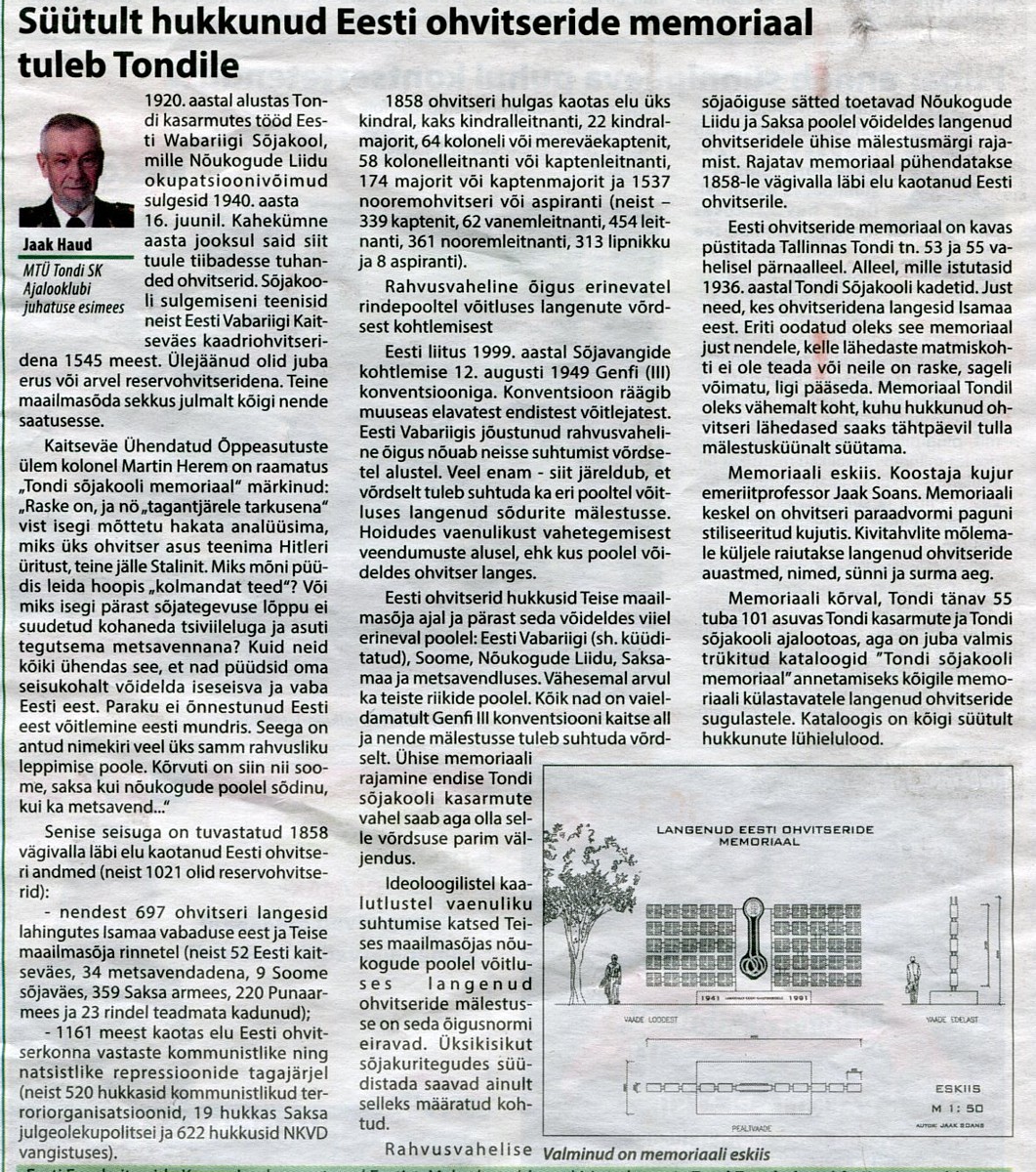 - Teema: SÜÜTULT HUKKUNUD EESTI OHVITSERIDE MEMORIAAL