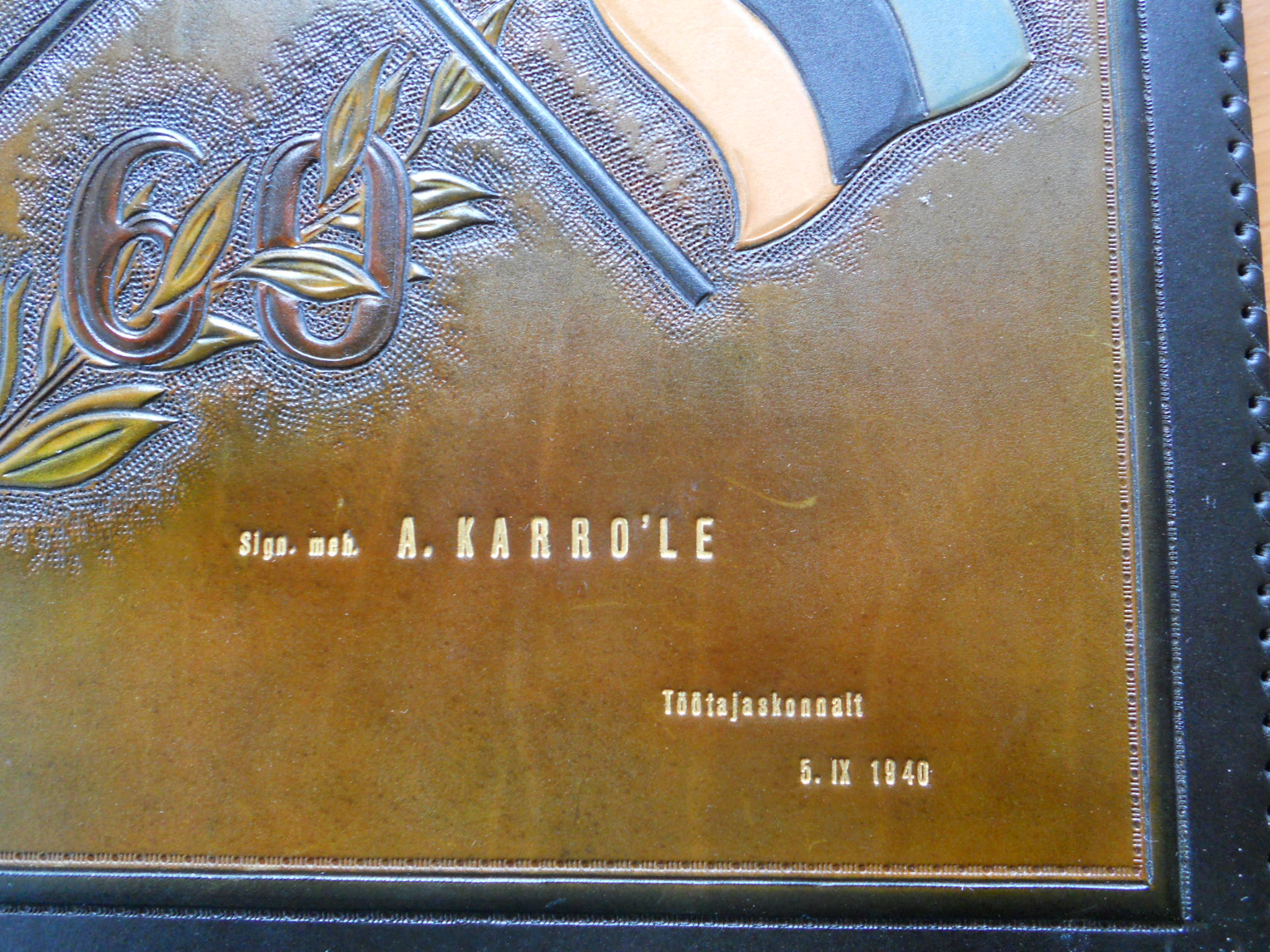Pakuksin EW-d.Kiiver küll alustas oma graveerimistöökojaga 1911 aastal aga mitte Tallinnas vaid tolleaegses Revalis.Tagumisel küljel olev kiri on suht sama,mis kodanlikul kolmelõvi nööbil.Tallinna vapp viitab linnavalitsuse kõrgele võllile aga pole välistatud,et selliseid kandis linnapea autojuht,to...