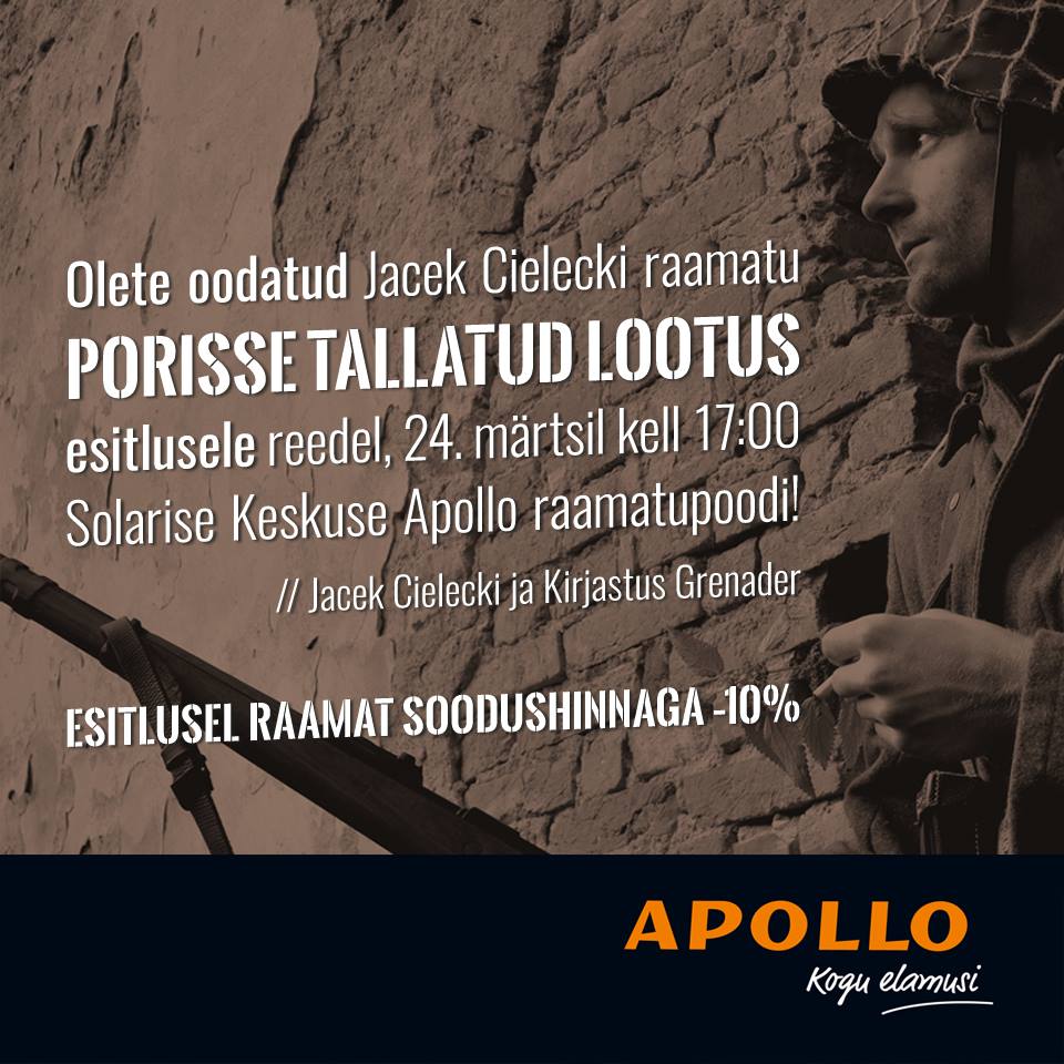 Paha ja vaieldamatult piinlik lugu. Kindlasti ei ole siin aga tegemist tahtliku valeinfo levitamisega ja mingit sihilikku eksitamise salaplaani ei maksa siinsest keskkonnast otsida. Tõstsin selle plakati siia 09. märsil Grenaderi FB kontolt ja ma ei osanud isegi unes näha, et algselt ning avalikult väljakuulutatud kuupäev läheb hiljem muutmisele (sellest tulenevalt ei taibanud ma seda muidugi ka jooksvalt kontrollida).lauri kirjutas:... raamatu esitlus oli neljap. 23. juba ära, mida toetab ka Apollo enda kodukal olev info ... Miks levitatakse foorumis valeinfot ja kelle huvides vahest oskab mõni austet ksf! selgitada.
