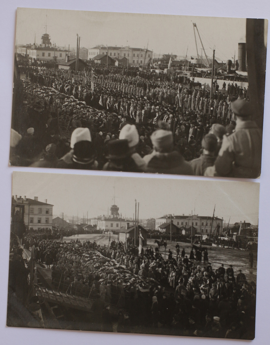 Esimesel kahel ülesvõttel on Landeswehr'i sõjas sõjasaagiks saadud laevad (lisatud pildistus ka EW ajal ilmunud VS raamatust) - kahe foto hind 50€. Ülejäänud kahel fotol on langenud Soome vabatahtlike ärasaatmine Tallinna sadamas - kahe foto hind 40€