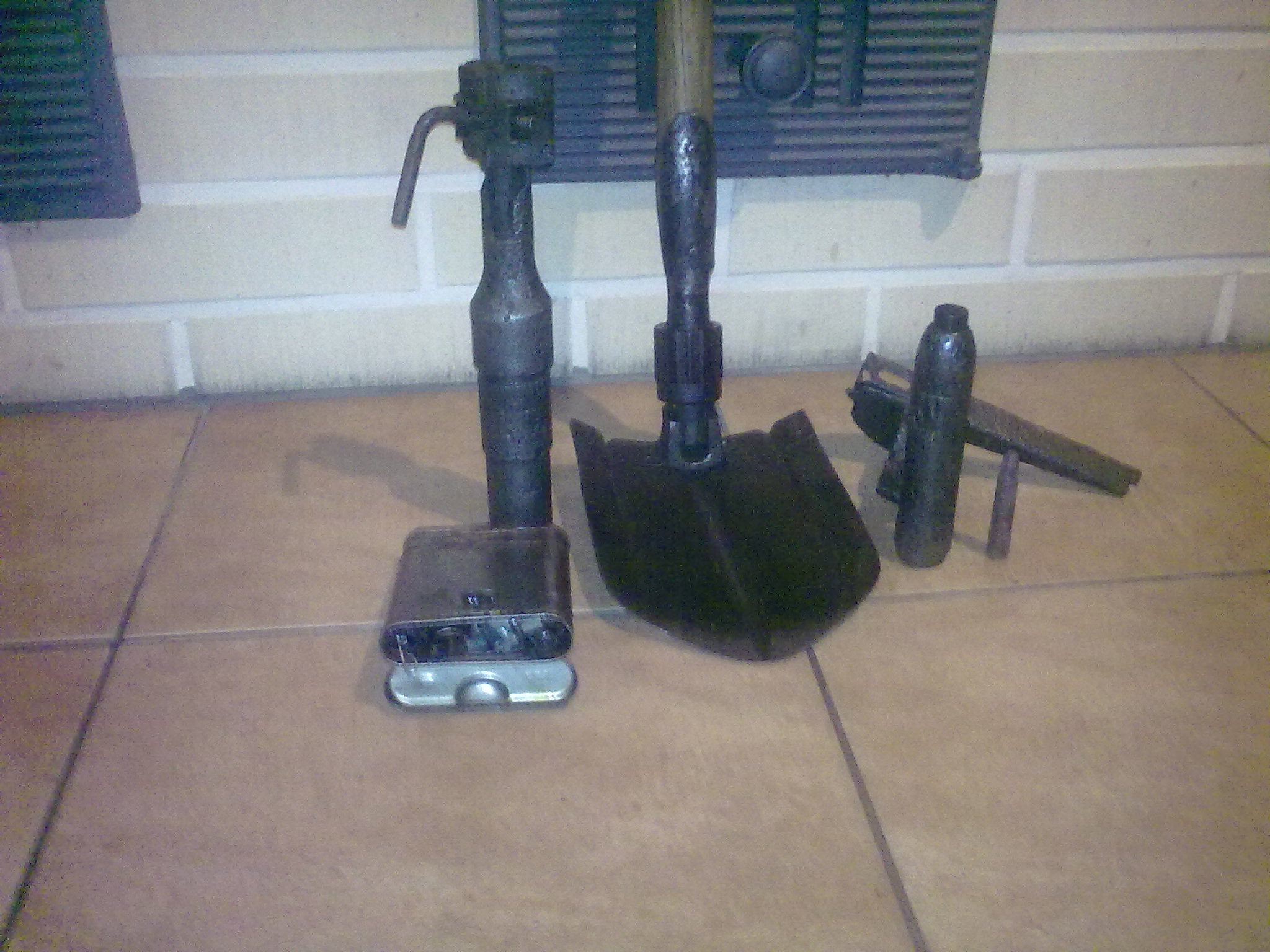 Müüa sellised asjad,milledel enesejaoks enam erilist väärtust ei näe. Saksa klapplabidas.Mutter liigub,vars korralik,labidas ise vaid tiba roostet näinud kuid kah kabe.K98 puhastuskomplekt.Puudu väike hari kuid selle eest olemas nn suht haruldane lusikas ja ülejäänu,mis komplektis olema peab.K98 granaadiheitja ja sihik.Mõlemad kunagi maa seest tulnud ja puhastatud kuid kõik osad liiguvad ja pudedad ei ole,lisaks veel sinna juurde spets granaadilaskmise padrun ja üks püssigranaat.Mõlemad loomulikult tühjad pahast ainest.Müüks kõik korraga ja hinnaks küsiks 75 Eur ?. Kui potensjaalne ostja soovib siis võin kaasa panna kingiks ka mõned kiirlaadjad k98 hülssidega.Mõnedel esemetel nähtavad ka markeeringud.Nodi asub Pärnus