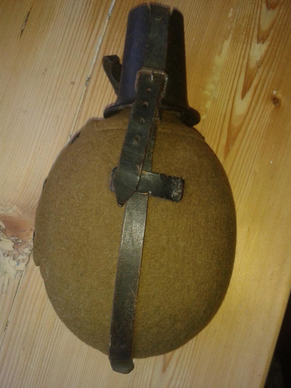 Liitrine nn. mägiküti pudel. Vilt tagant pisut koitanud, tops pruun ja markeeringutete.