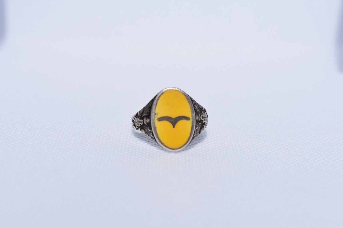 Luftwaffe Fallschirmjäger / Flight crew ring! (Yellow color was used for Flight Crews and Fallschirmjägers). Enamel. Silver. 835F*.