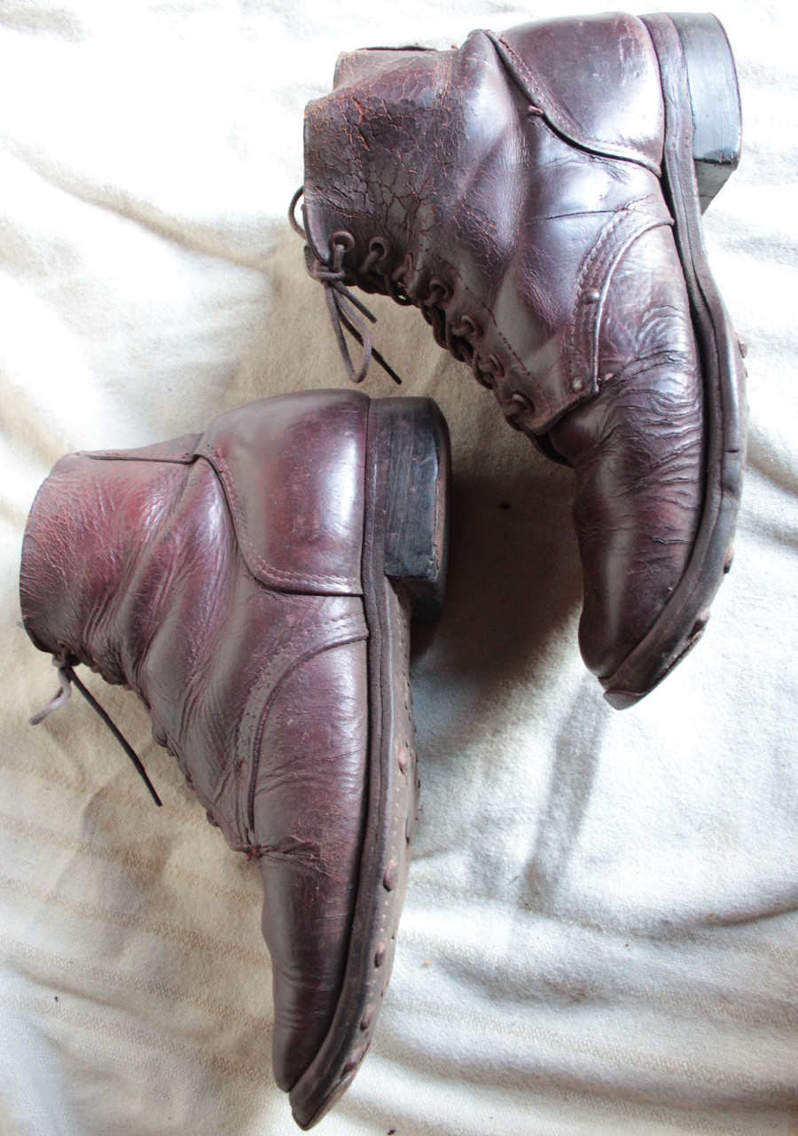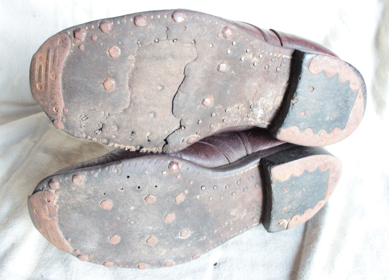 Mõnusalt kantud paar. Nahk väga pehme. Olid sakslase komplektis mul. Ilmselt olnud sakslase trofee või siis venelane löönud alla saksa naelad kuigi kahtlustan esimest.