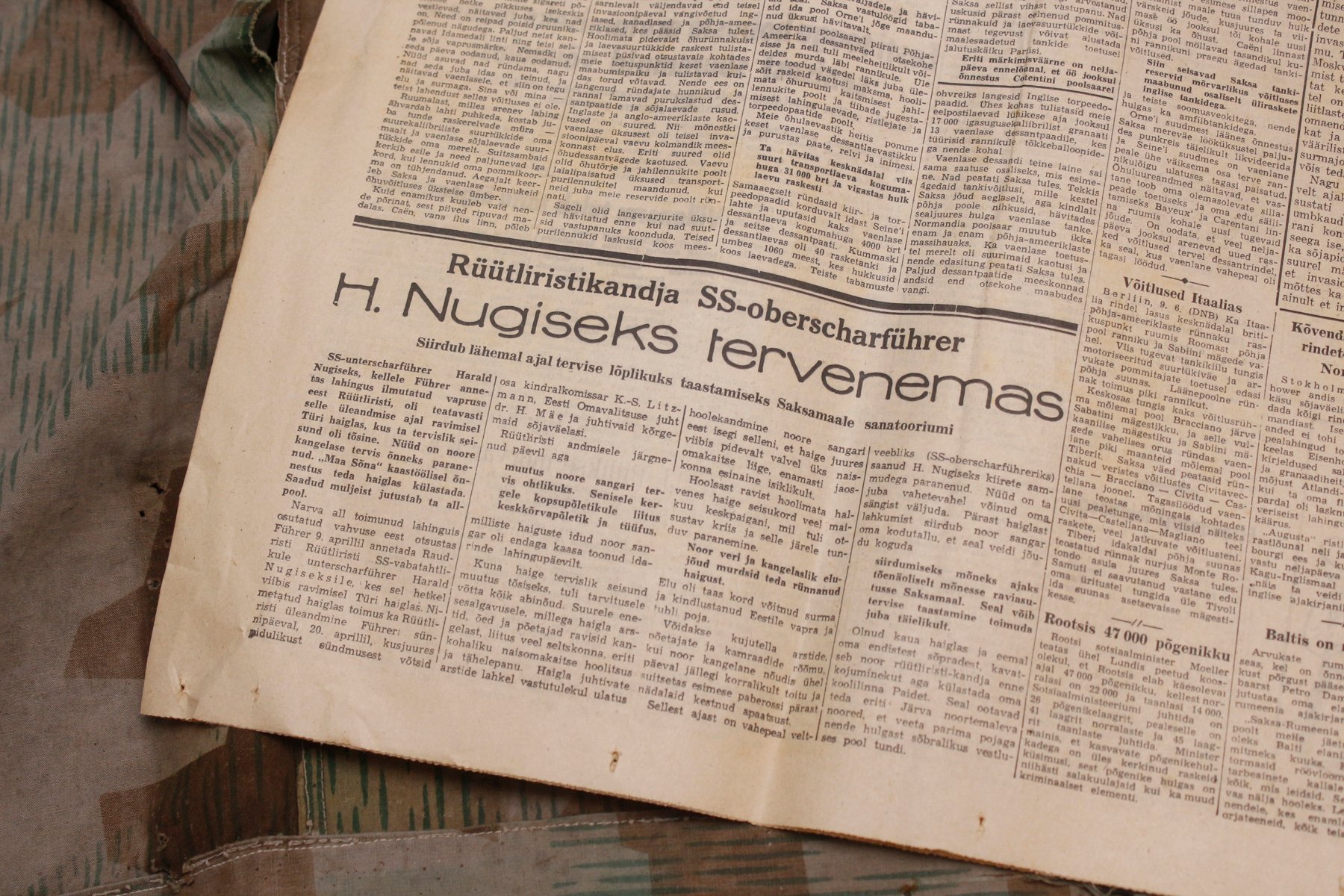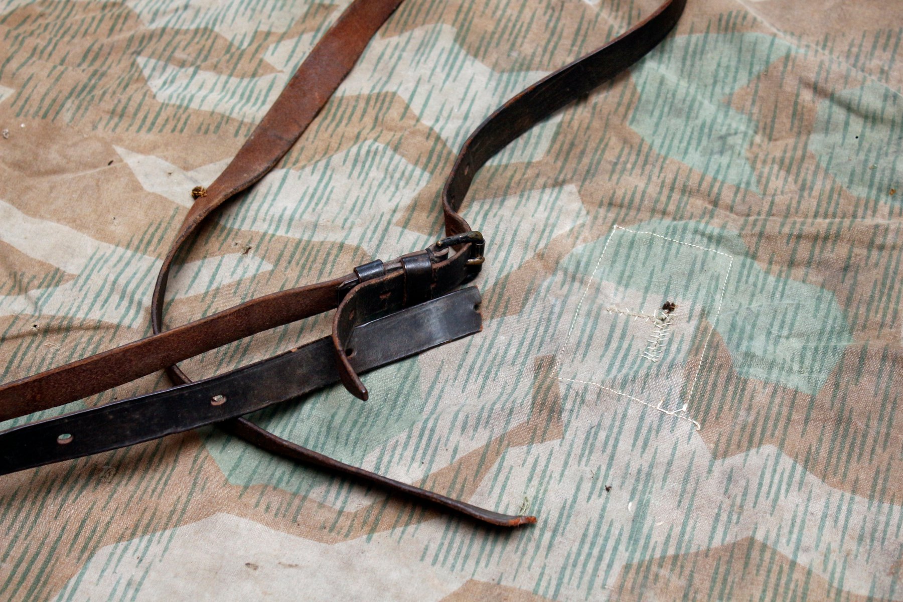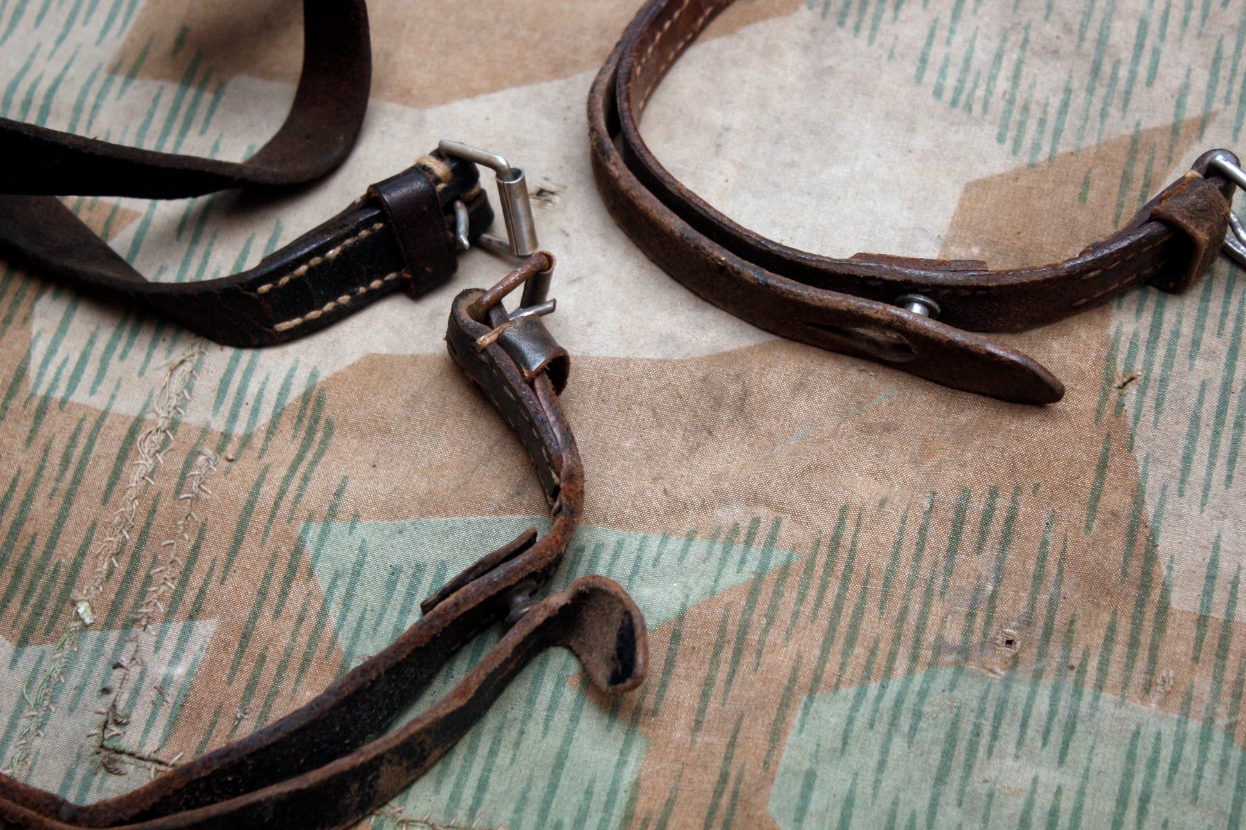Kolm tavalist varustuserihma, kaks imelikku (kas sõjaaegsed?), poolik binokli vutlari rihm, ajaleht "Maa sõna" ja tükk WH telkmantli kangast.