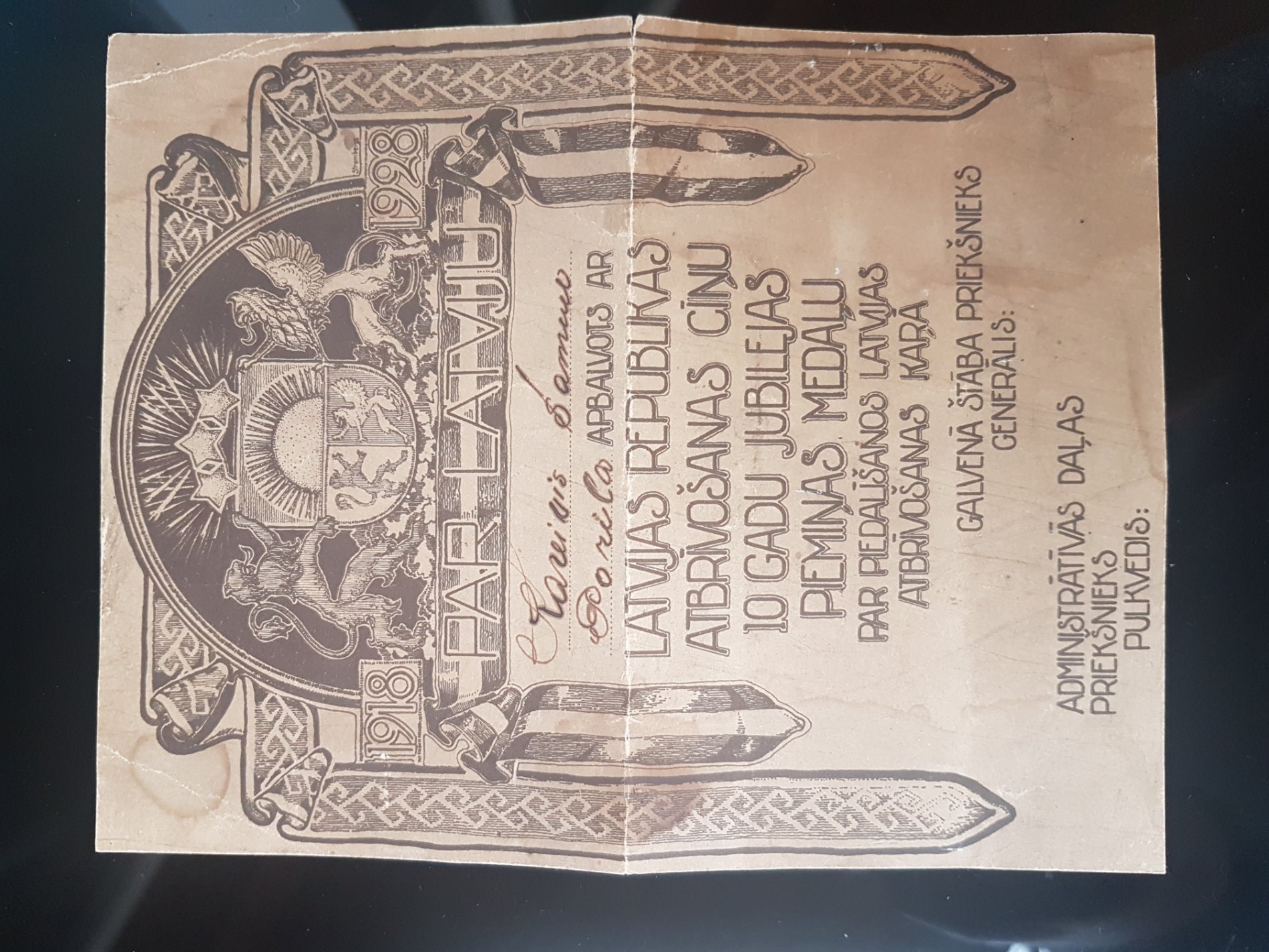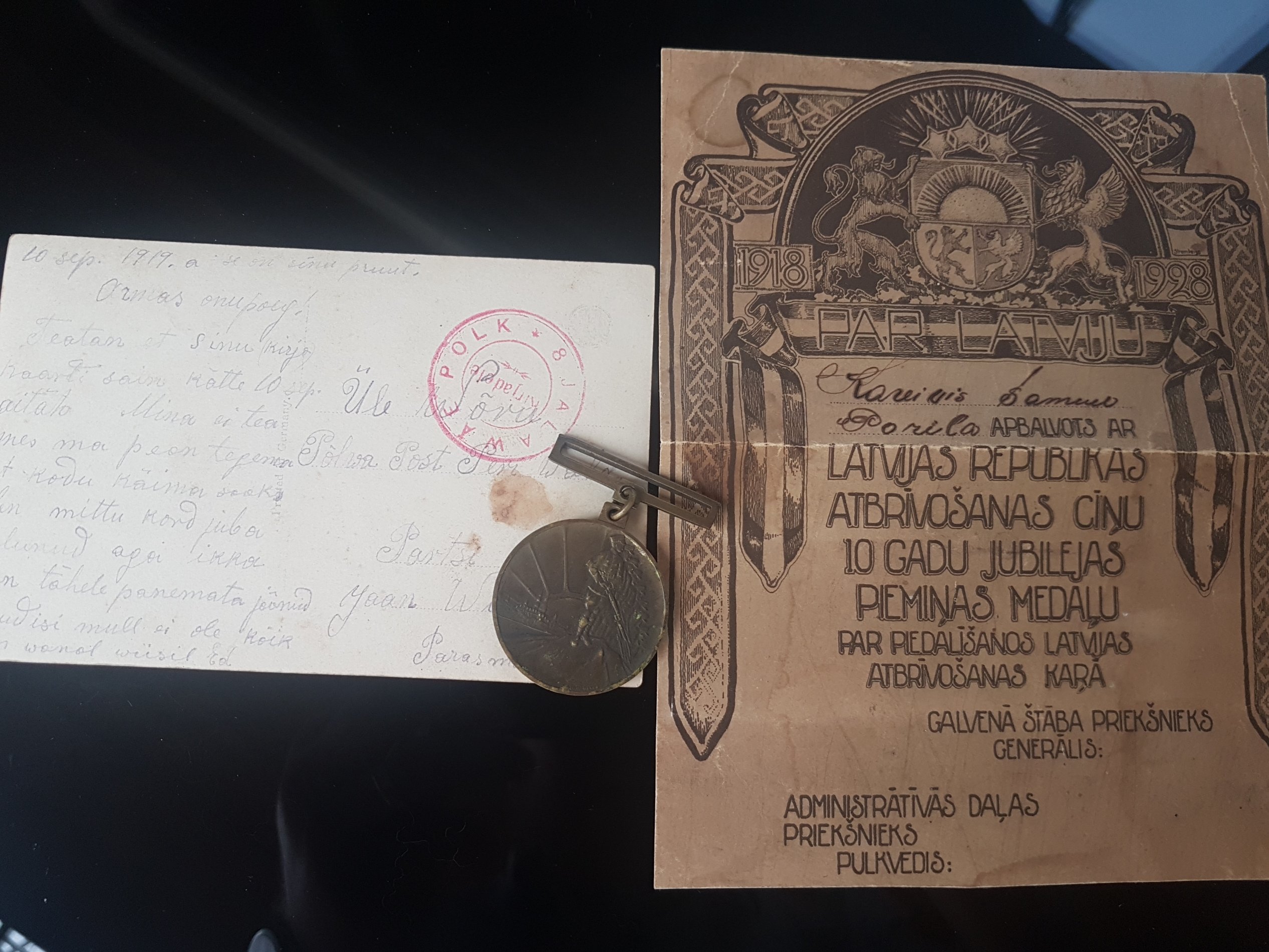 Re: M: Läti 10 aastat vabadussõjast medal tunnistusega eestlasele