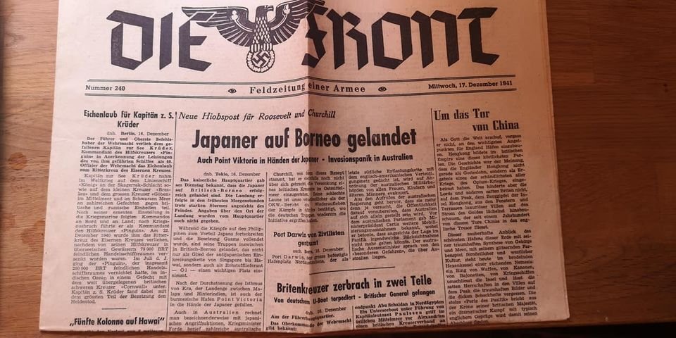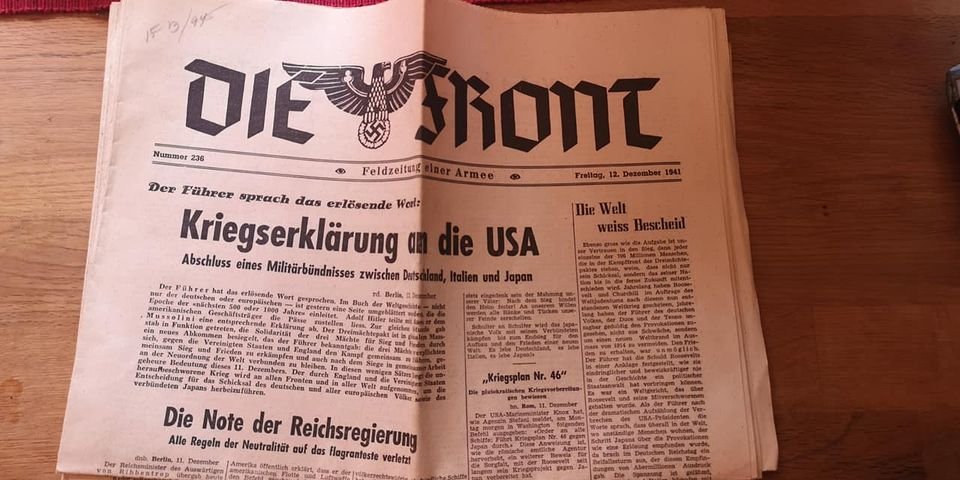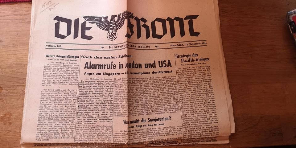 Ajalehe Die Front 5 järjestikust numbrit detsembrist 1941.