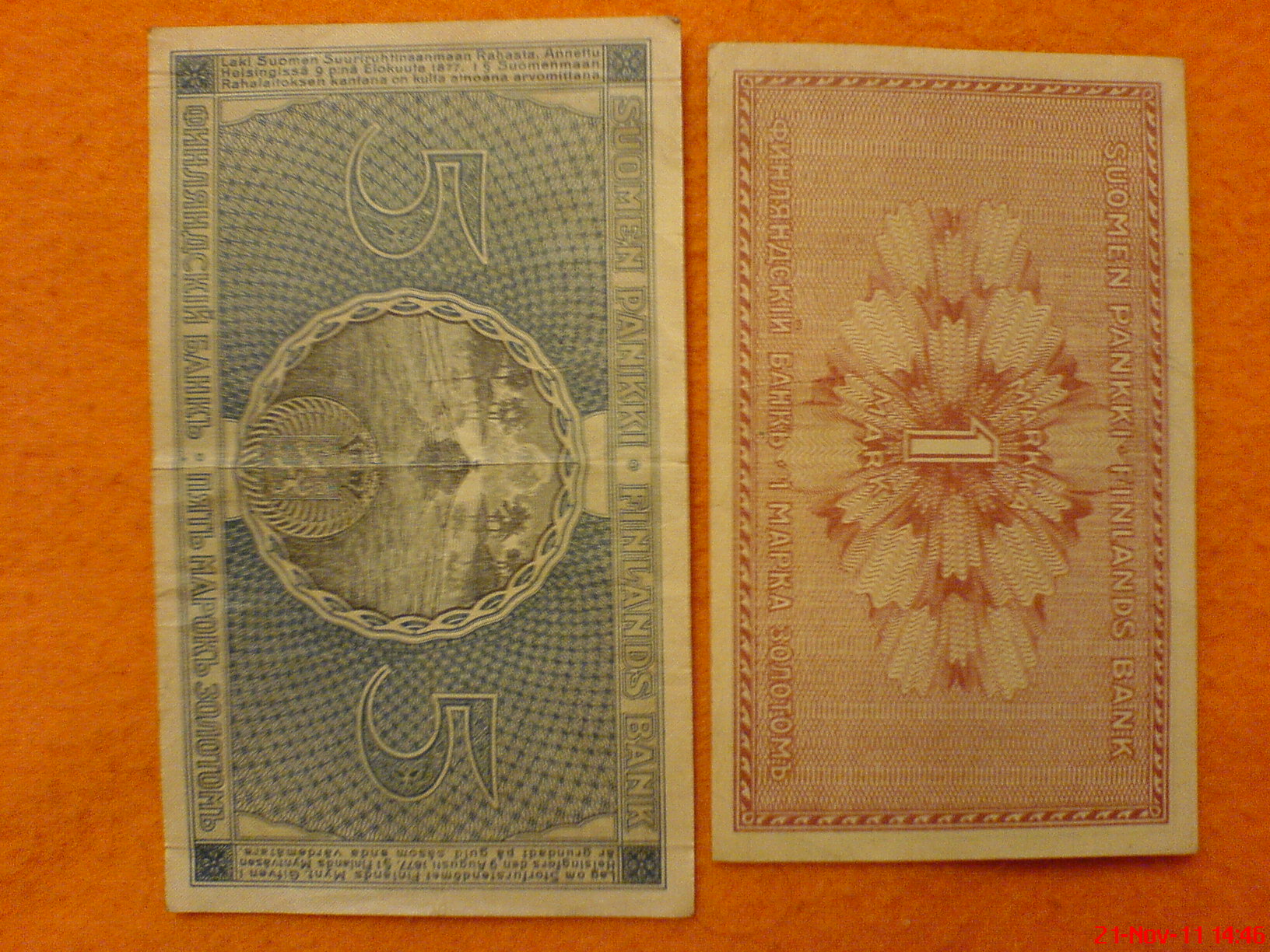 5 kroonine paluks ja soome 1 ja 5 margased.