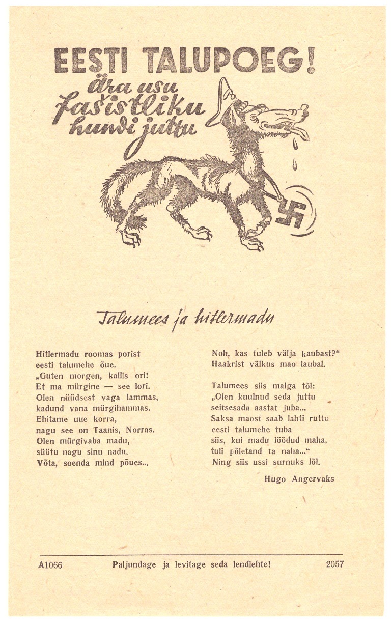 Propaganda moonast pärit lendlehed, ostetud Kurtna laadalt. Plaanis ka teised lendlehed sisse skaneerida ja väljanäituseks panna.