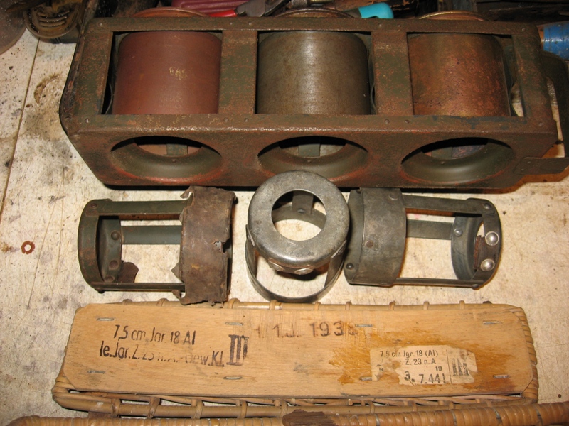 Korvis oli 4 vahet. Ühes rest kolme hülsiga. Ülelejäänutes 3 mürsku. Nende kolme vahe ülemistes osades, väikeste rihmade küljes olidki need restid. Kõik jumalast õige. Aga kui see nn. lömmis rest sirgu ajada siis identne sirgega. Aasta ka hästi "varajane".Aasta tagasi teisel müüal selliseid lausa kolm? Sellejärgi tõesti vast mõeldud hoopistükkis mingi muu mürsiku kaitseks? Aga kus?