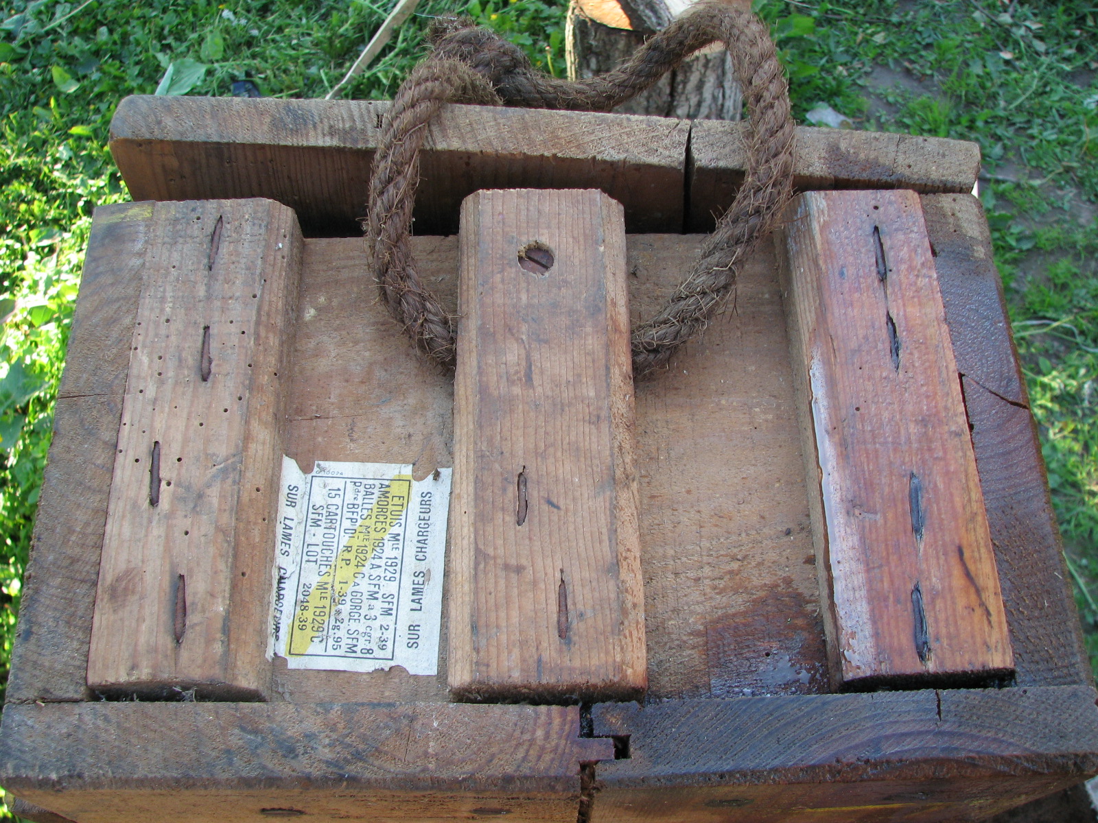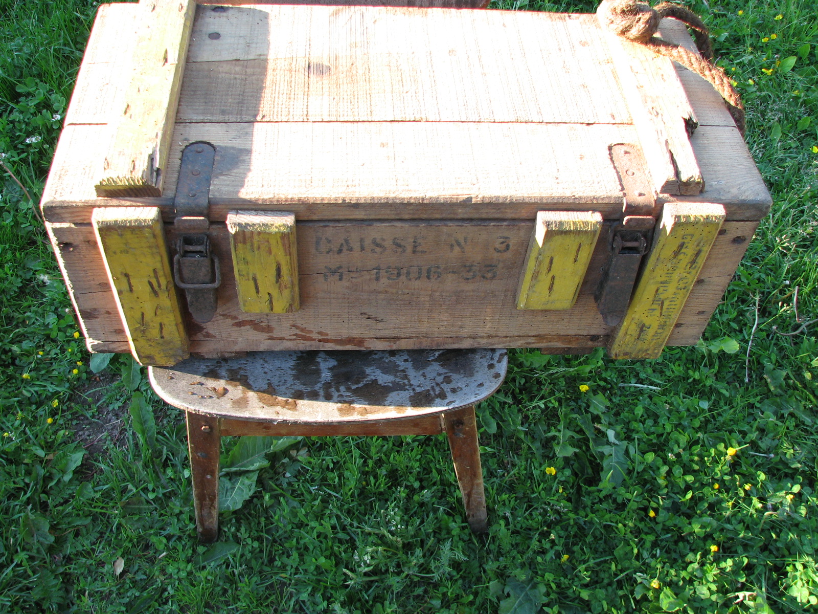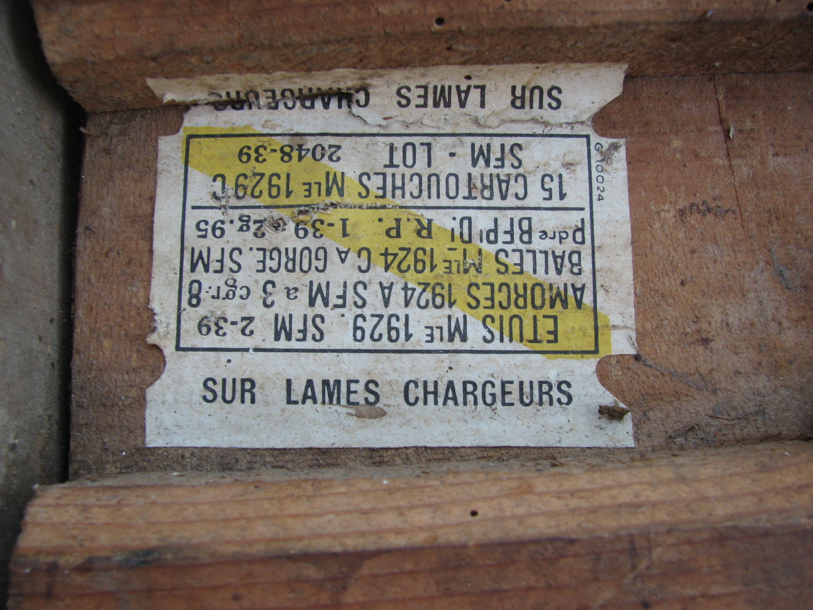 Tegemist prantsuse padrunikastiga, millel ei ole küll trofeekastina kasutamise tunnuseid (ala saksa kirjad vms), aga siia on jõudnud suure tõenäolisusega ikka läbi sakslaste, ja ka nende kasutuses olnud, aga ei ole veel korduvalt pakitud. Alumisel real märgitud padrunite arv pakis.