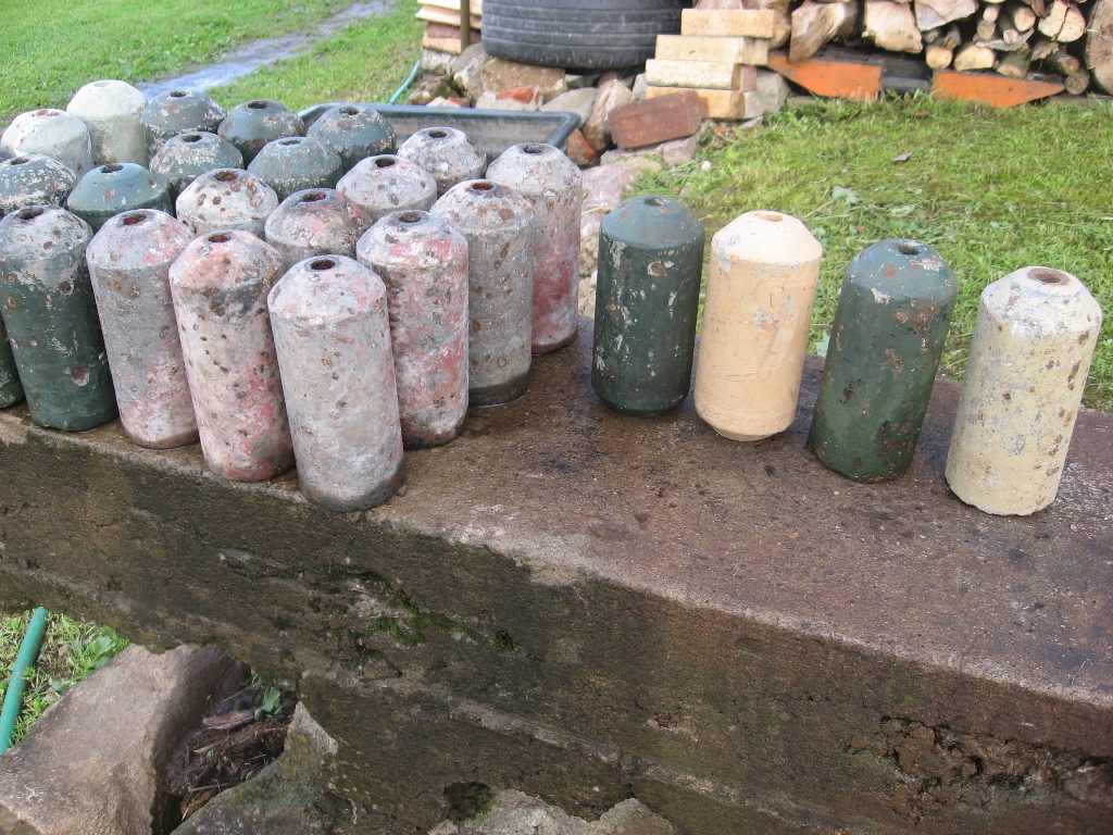 Piltidel ära toodud erinevad varjandid (mis, kodus juhtusid olema). Rohelistega kõrvuti tulid välja maa seest Kurtnast kümmekond punast? Algul mõtlesin, et pleekind? Kuid näha selgelt punase värvi jäänused. Samuti metallosad samamoodi sees, kui teistel. Värv suht kulunud, kui vaadata samast kohast pärinevaid rohelisi. Kas tegu õppeotstarbelistega? Sakslastel nagu olid õppeotstarbelised vidinad punast värvi? Kas keegi oskab öelda milliste kastidega Stockmine transporditi? Milliseid mõtteid kaasfoorumlastelt?