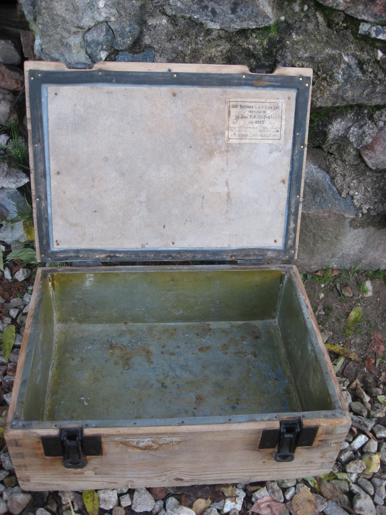 Ostan 2. maailmasõja aegseid laskemoonakaste, -konteinereid, -korve ja -topse. Võivad olla puidust, metallist, papist, bakeliidist või punutud. Seisukord ei ole oluline.