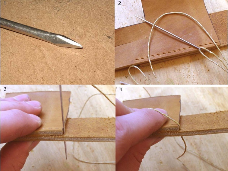 Kui kingsepa õmblusnõela pole, siis ise olen kasutanud kahte suuremat kotinõela, et ei tekiks mitmekordset õmblust.Kui augud ees, siis paraja pikkusega niit, üks nõel ühte ja teine teise otsa ja muudkui aga õmble.
