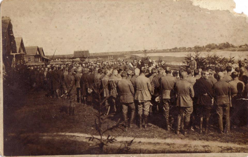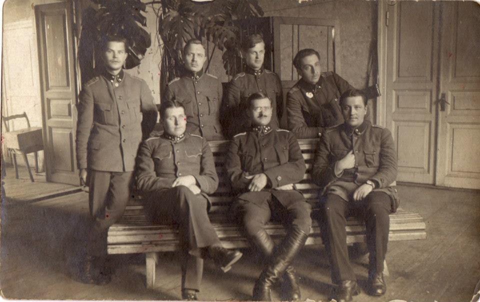 Ohvitseride pildil istuvad: vasakul kapten Oskar Pajusoo (1. jalaväe polk, hilisem kolonel) ja keskel kapten Alleksander Voldemar Pulk (1. jalaväe polgu ülem, hilisem kindralmajor)