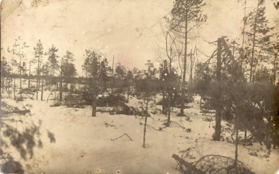 4. pilt - 1. jalaväepolgu lahinguliin, suurtükitulest purustatud mets Mustjõe ja Krivasoo vahel detsembris 1919