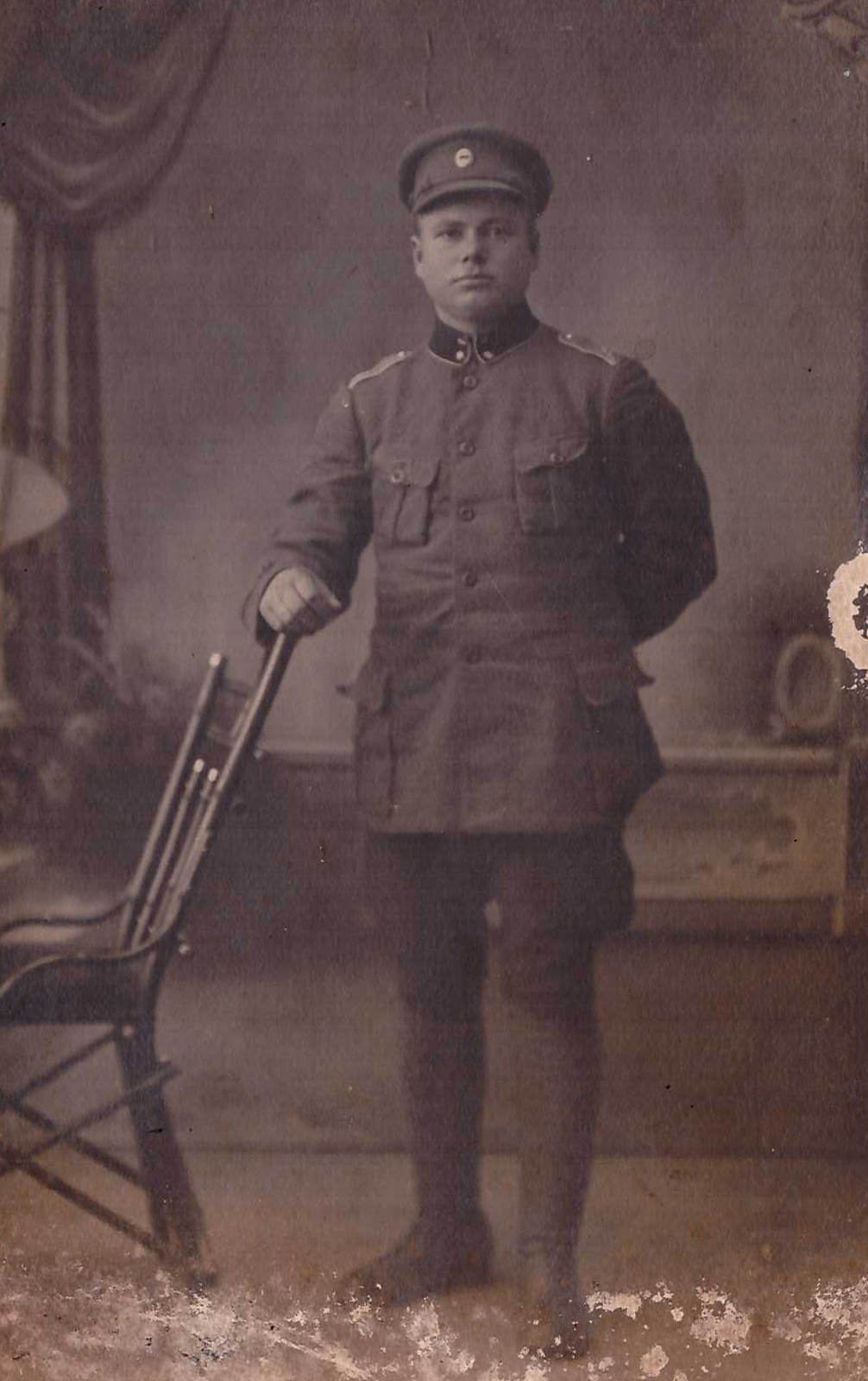 Lisan siia ka mehe varasema fotoseeria maailmasõja ajast.Esimene foto 29.jaanuar 1917.Mees 21 aastane.Teine foto võetud 22.juulil Tallinnas Marienburgi mõisas??? Mis asi see võib olla?