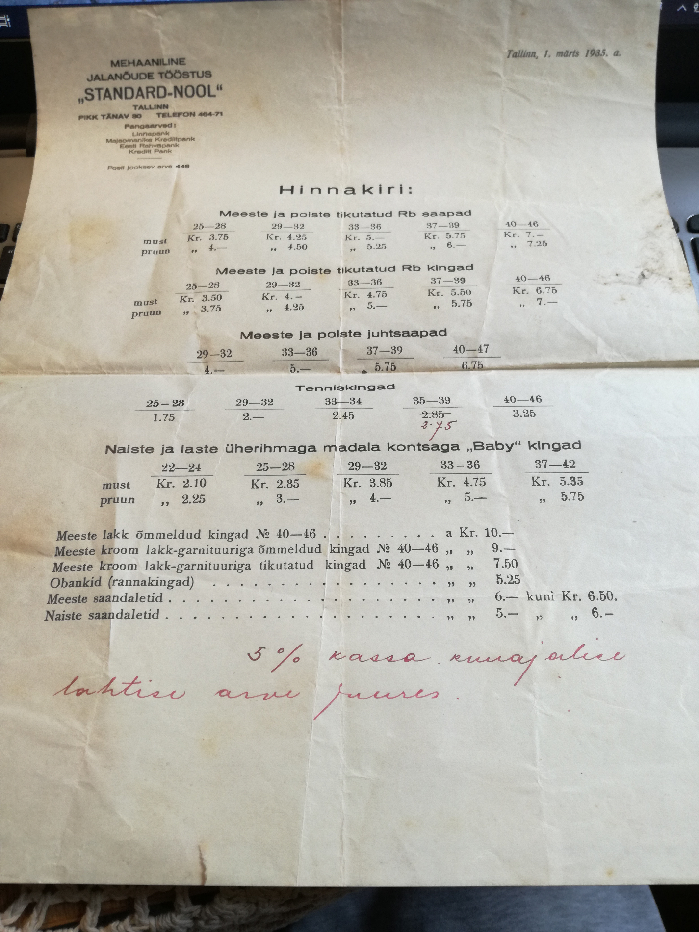 Sidekriips on vahelt puudu lihtsaltppp kirjutas:Kui nüüd muid vigu ei ole, siis jalgrataste, õmbl. masinate ja raadiote hinnad on küll puusse pandud, ei tea ka, kui oskuslikud need oskustöölised pidid olema, et 23 krooni päevas teenisid?