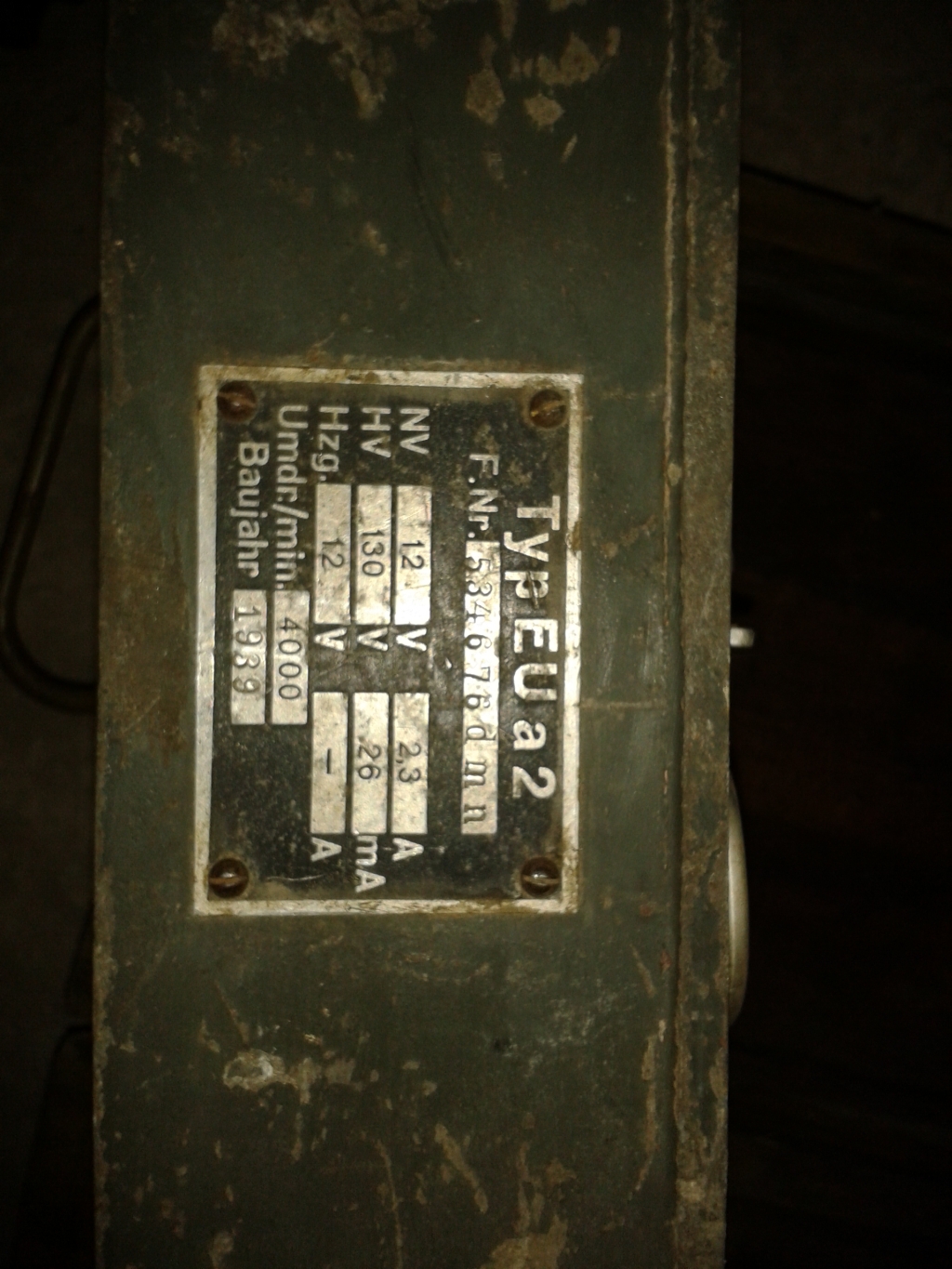 Sõber sain endale pealkirjas mainitud generaatori, kena väike asjandus, millest saab kindlasti elulooma. Olla pärit Kanepi kandis soomustehnika (tank?) pealt. Ehk siis noored poisid tehnika surnuaias (+) veidike soomust. Ühes generaatoriga tassiti samast masinast ära ka kaks umformerit - EUa2 ja U 10a1.