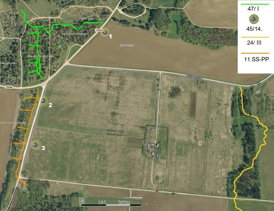 Muide, kel huvi tekkis, siis kollasega märgitud 24/III positsioonid on tänaseni maastikul näha.