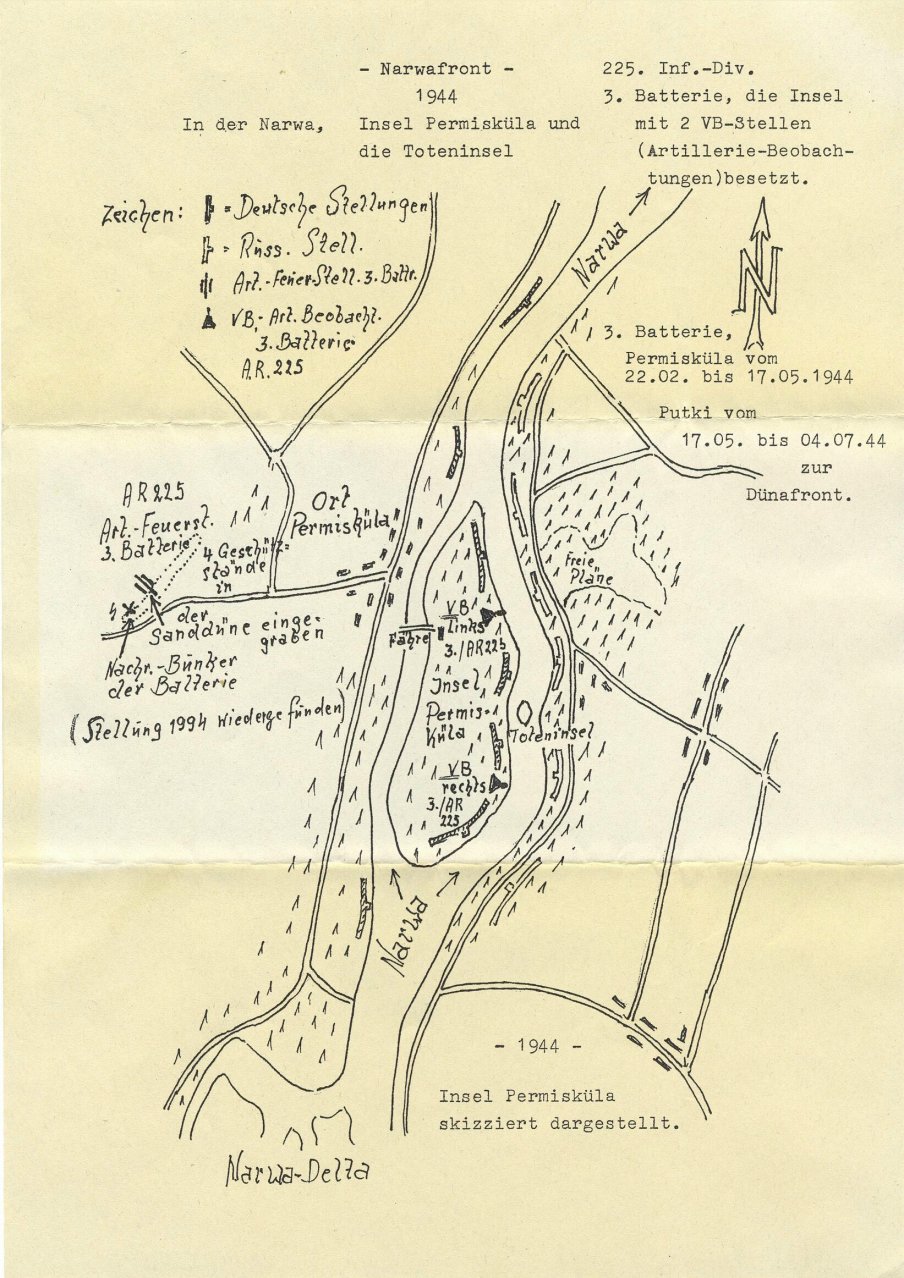 Need saare lõuna ja põhjas otsas olevad kolmnurga kujuga tingmärgid on AR225 3.patarei observaatorite kohad.Patarei ise asub linnulennult 2 kilomeetrit sisemaa poole.Torud on olnud 15 cm sIG-d. Igatahes on sellelt positsioonilt tuld kõvasti antud.Samuti on selle patarei asukoht punaarmee poolt suht hästi sisse lastud,rünnatud on ka lennukitega seda kohta.Lisan pildi ka ühest hülsside hunnikust antud positsioonil.