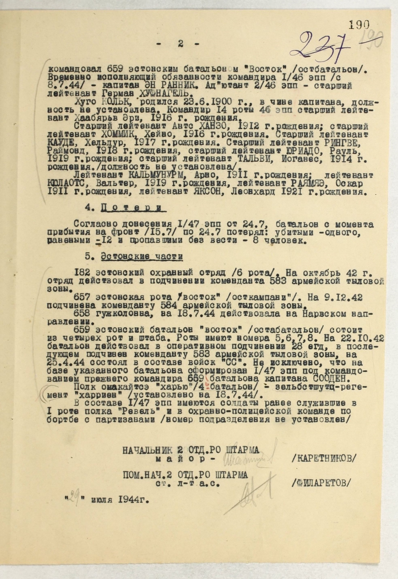 Fikseeritud kaotused seisuga 31.07.1944.a.: