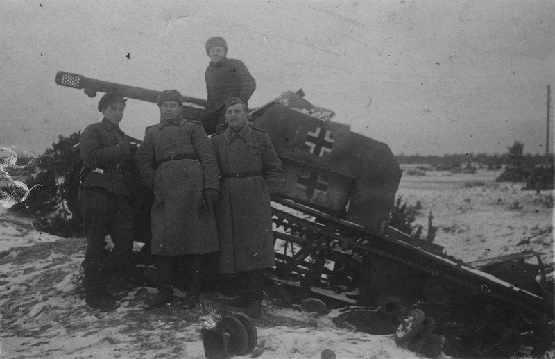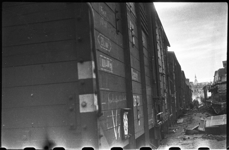 Ajaloomuuseumist via muis.ee: "Punaarmee poolt hõivatud saksa sõjatehnikaga ešelonid."