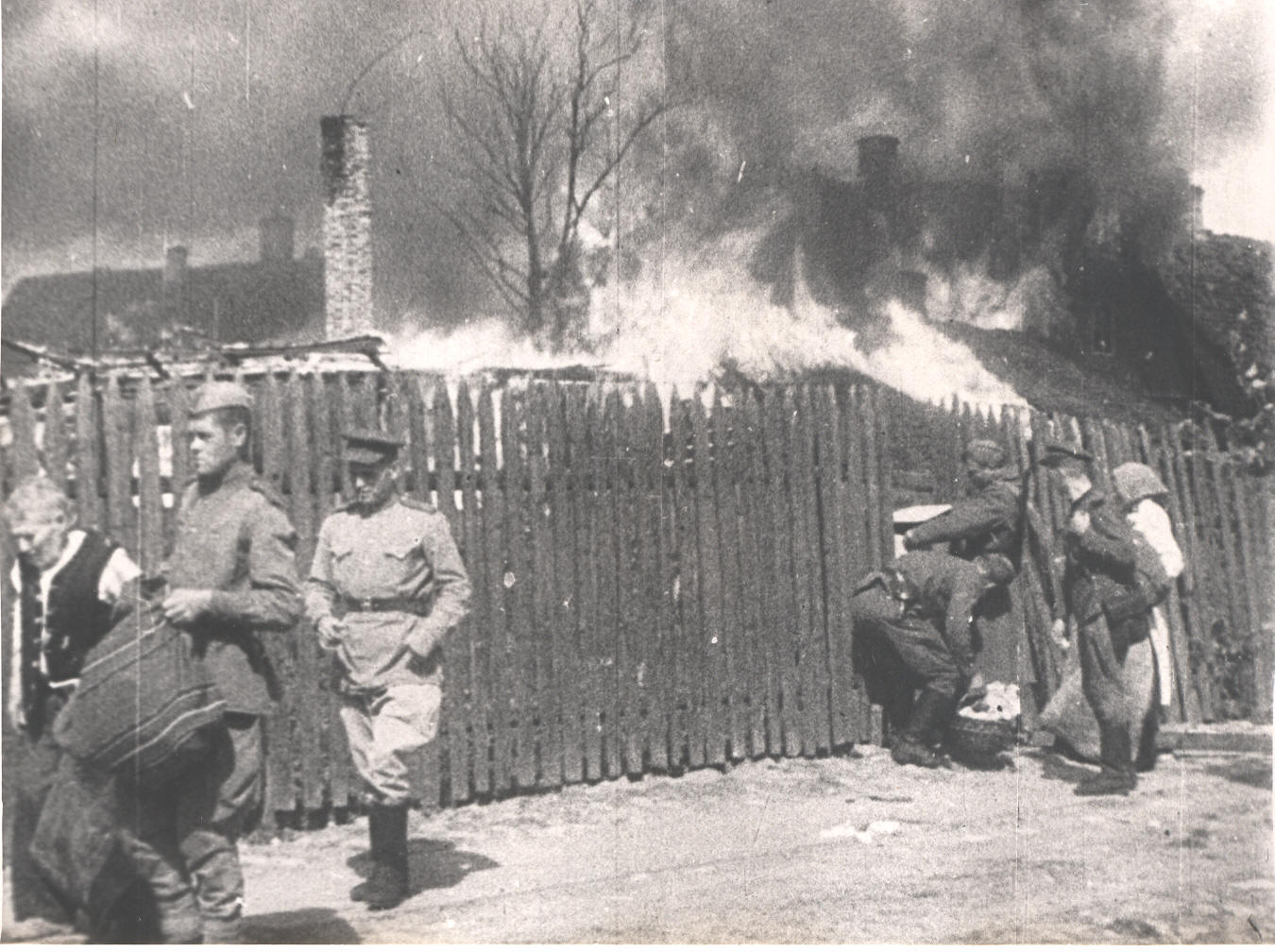 Foto. Võru vabastamine 1944.a. augustis.Põlev linn, inimeste väljatoomine põlevast majast..jpg