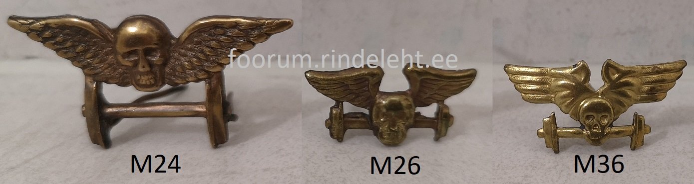 Erinevalt valmistatud 1936. aasta suurtükiväe nooremohvitseri tunnused.