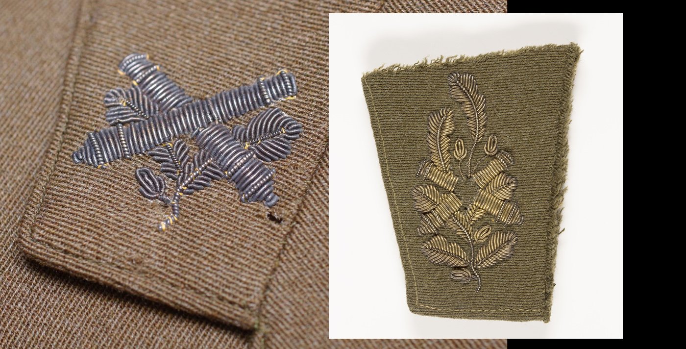 Jah selles ei ole kahtlustki, et see tühimik on seal väeosa trafareti jaoks. Küsimus oligi, et kas selline suurtükiväe ohvitseride tunnuste tikkimisel see tühimik jäeti sinna alati või vahel tikiti ka lõpuni valmis ja lisati trafarett sinna peale.