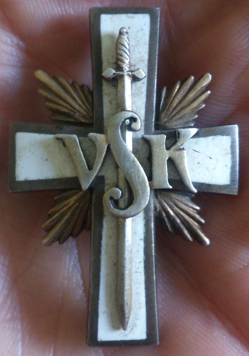 Ühele EW ohvitserile kuulunud rinnamärk. Mees lõpetas 1922.a Vabariigi Sõjakooli rahuaegse kursuse ja tema poeg arvaski, et tegemist on Vabariigi Sõjakooli märgiga (VSK).