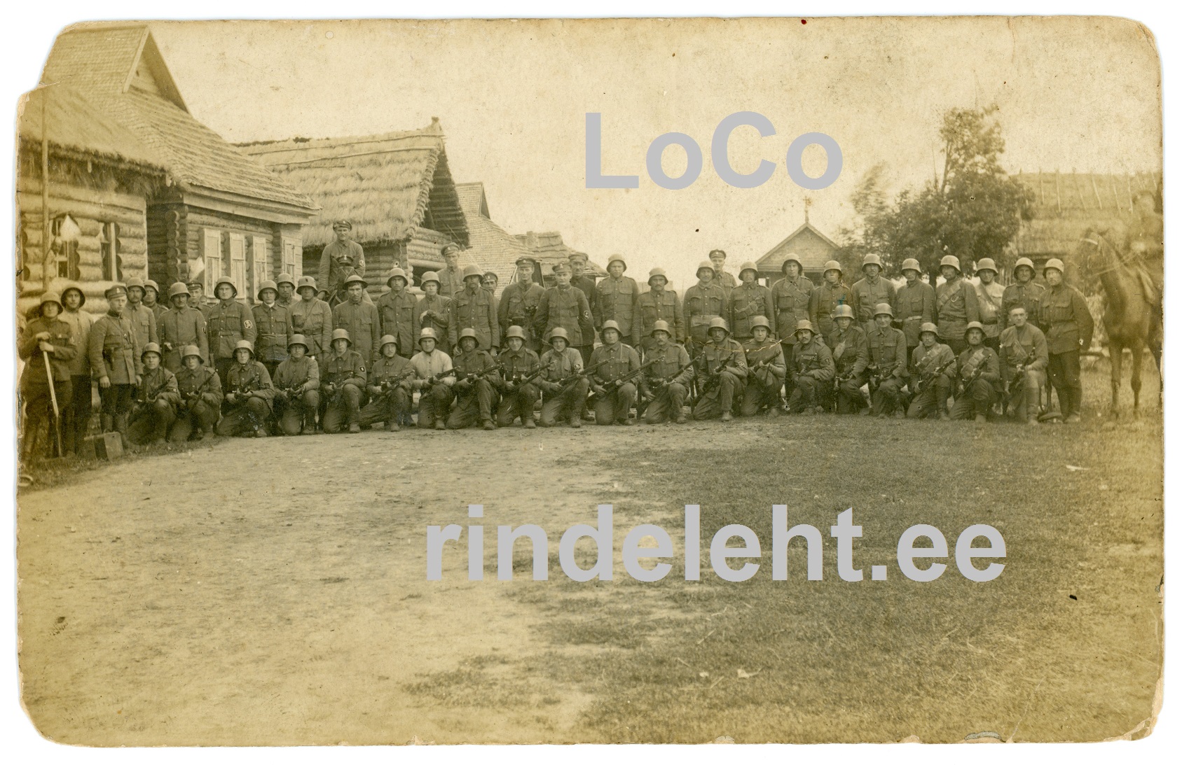 Foto taha on kirjutatud Kuperjanovlased Ingerimaal, seal toimetati suvi/sügis 1919. Keskel on vist alamleitnant Rudolf Tarik, kes oli 1. roodu ülem 15.02.–15.11.1919.