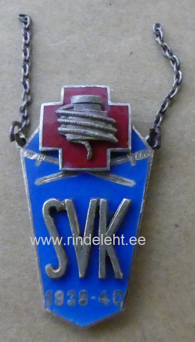 Piltidel on Sõjaväe Keskhaigemajas 1939-40. a korraldatud sanitaar-velskri kursuse (SVK) märk.
