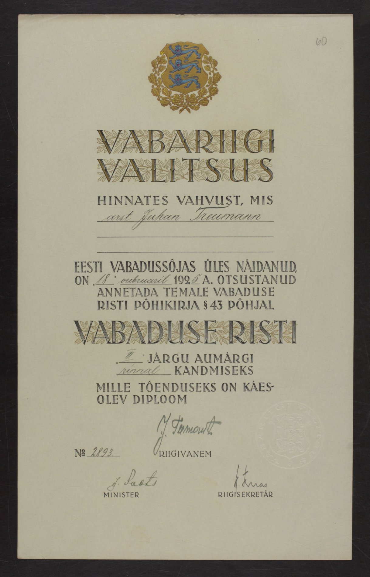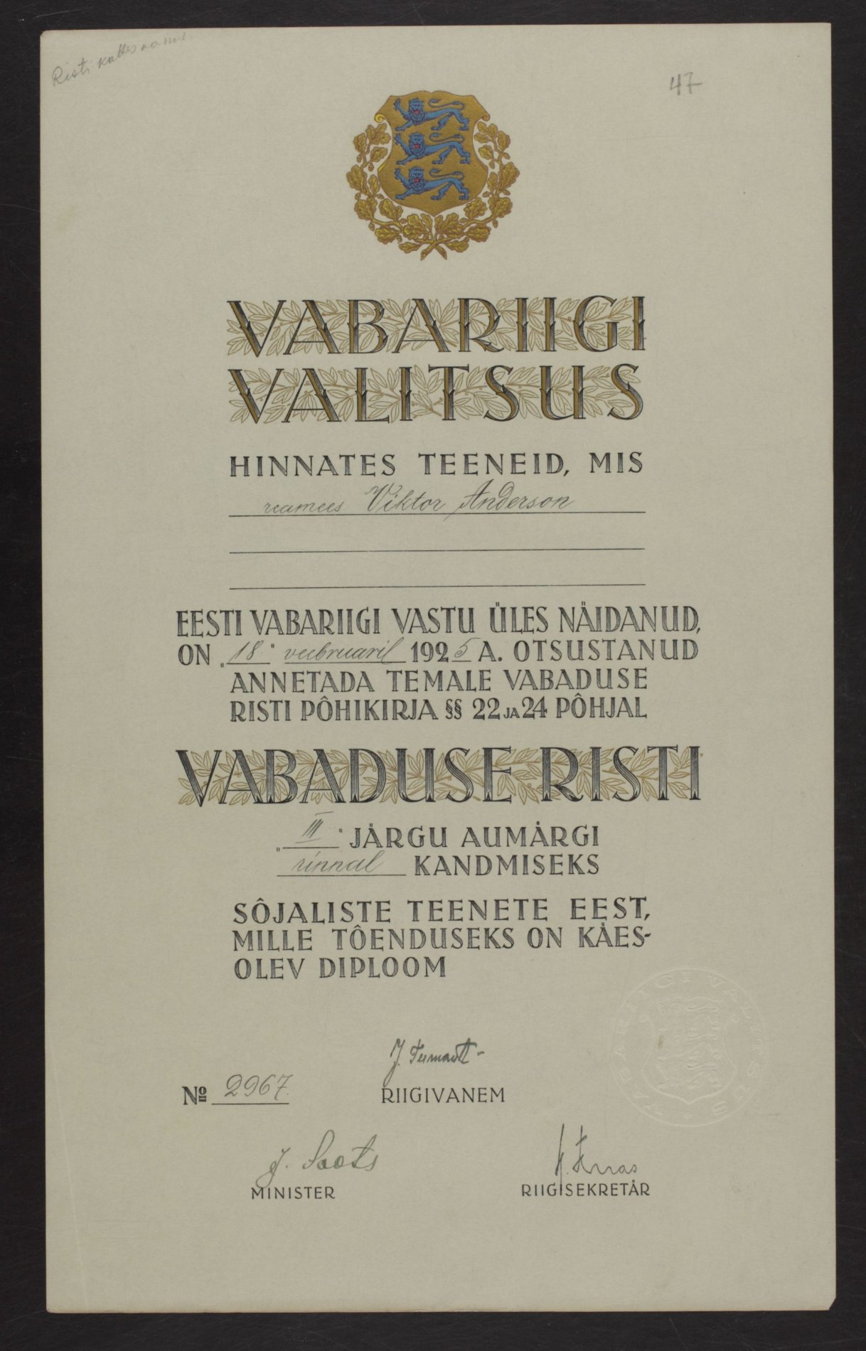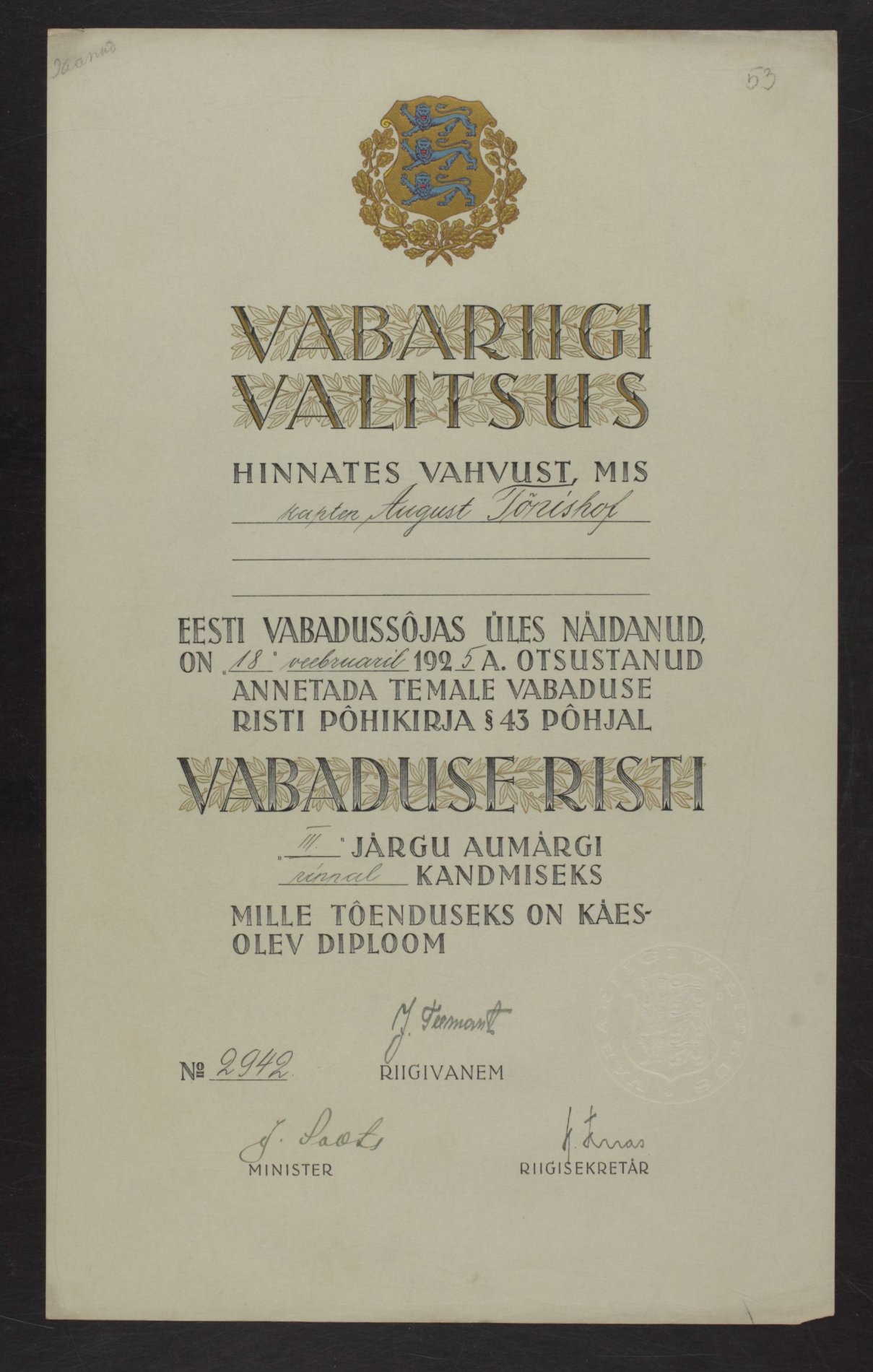 Vabadusristi tunnistused ...