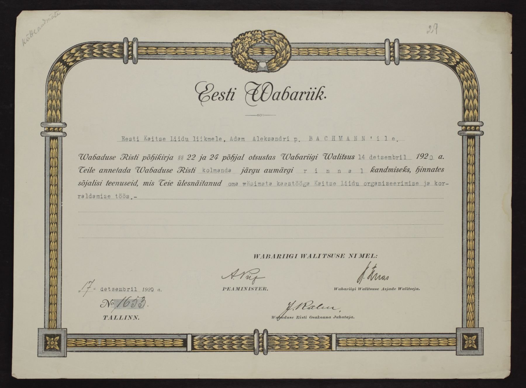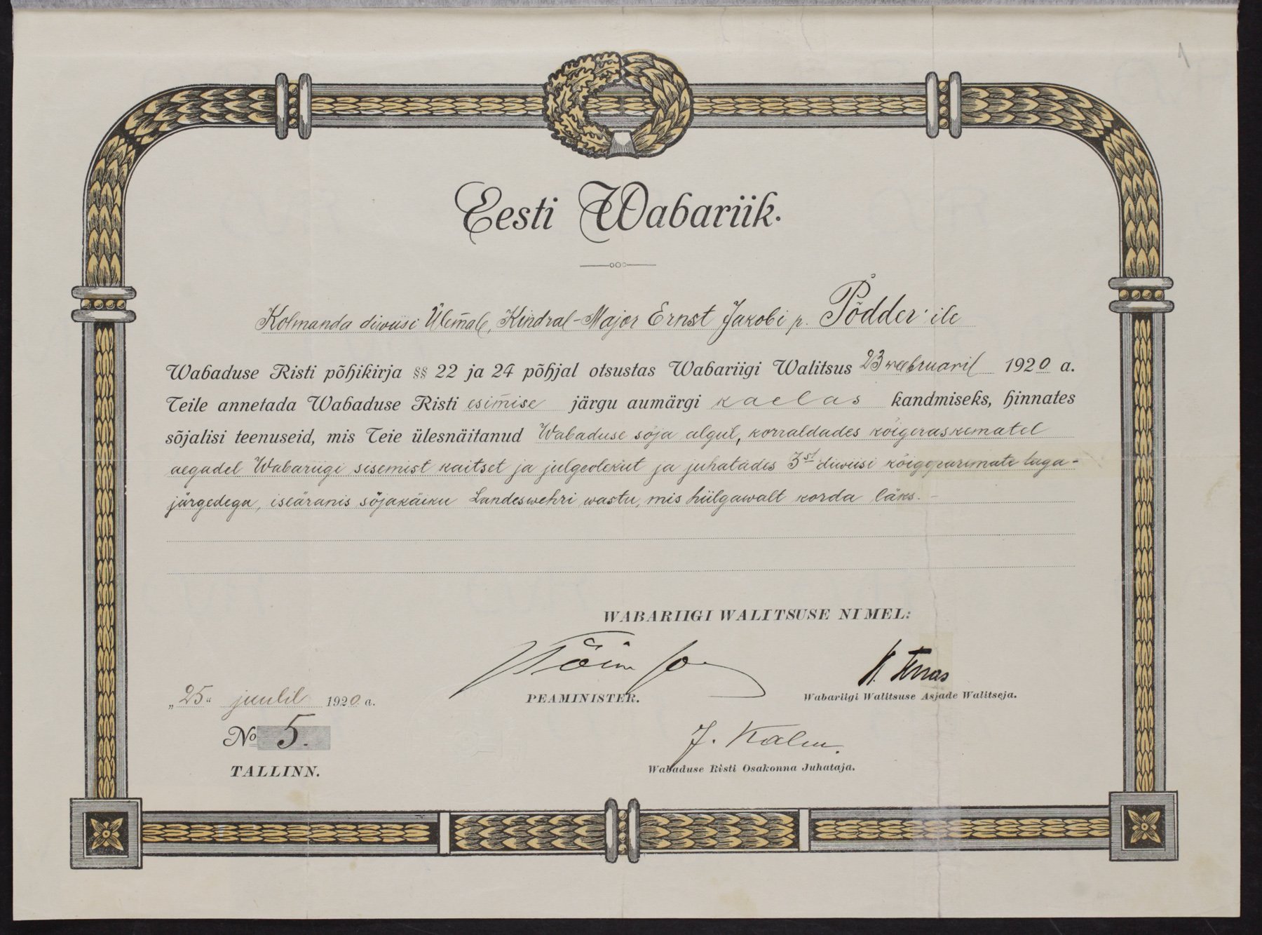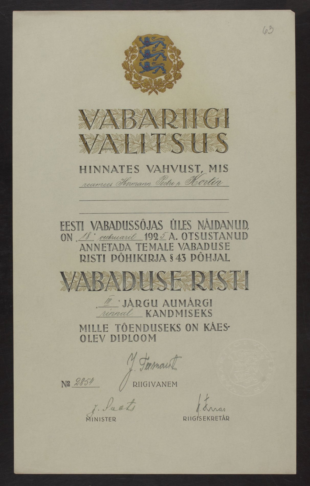 Vabadusristi tunnistused ...