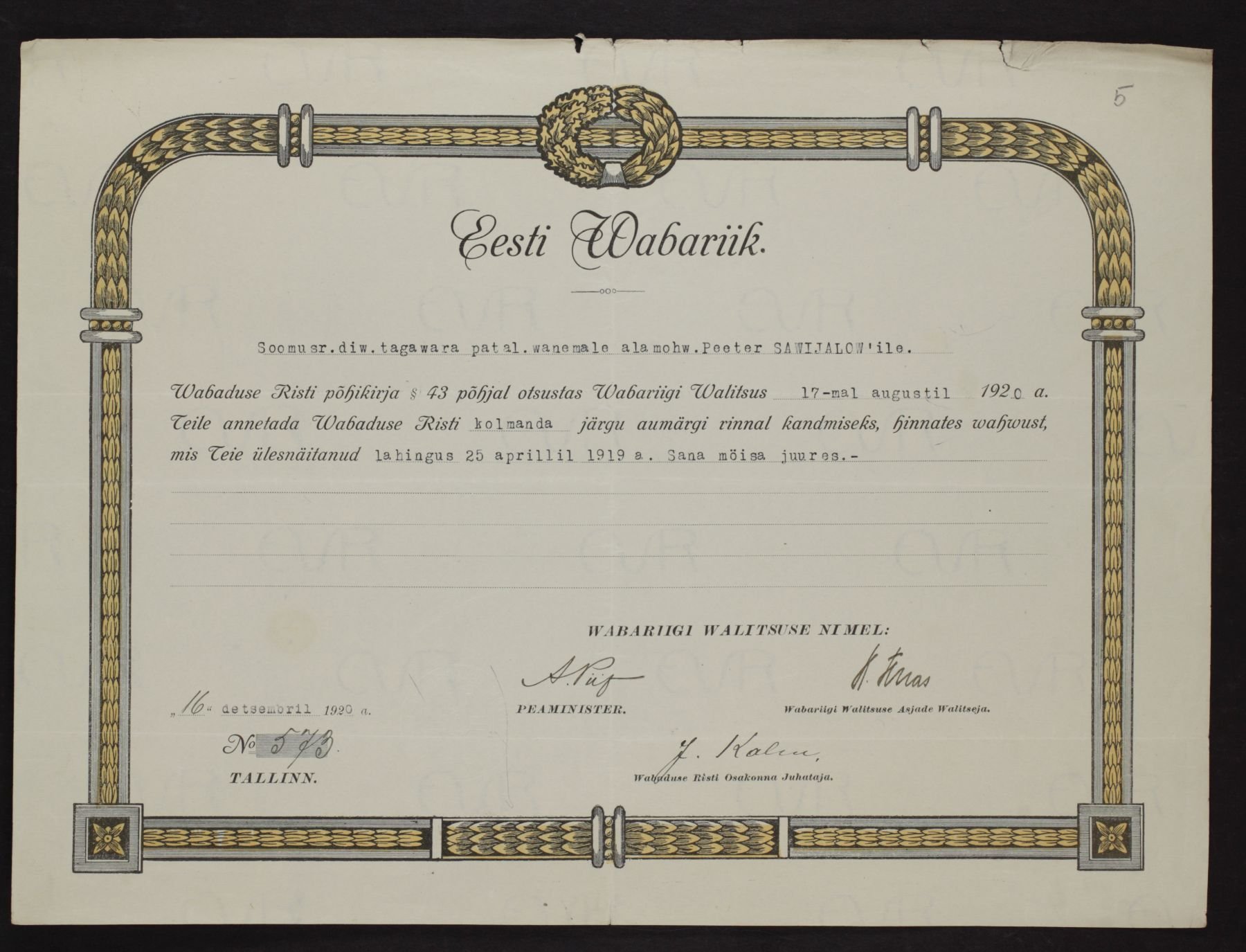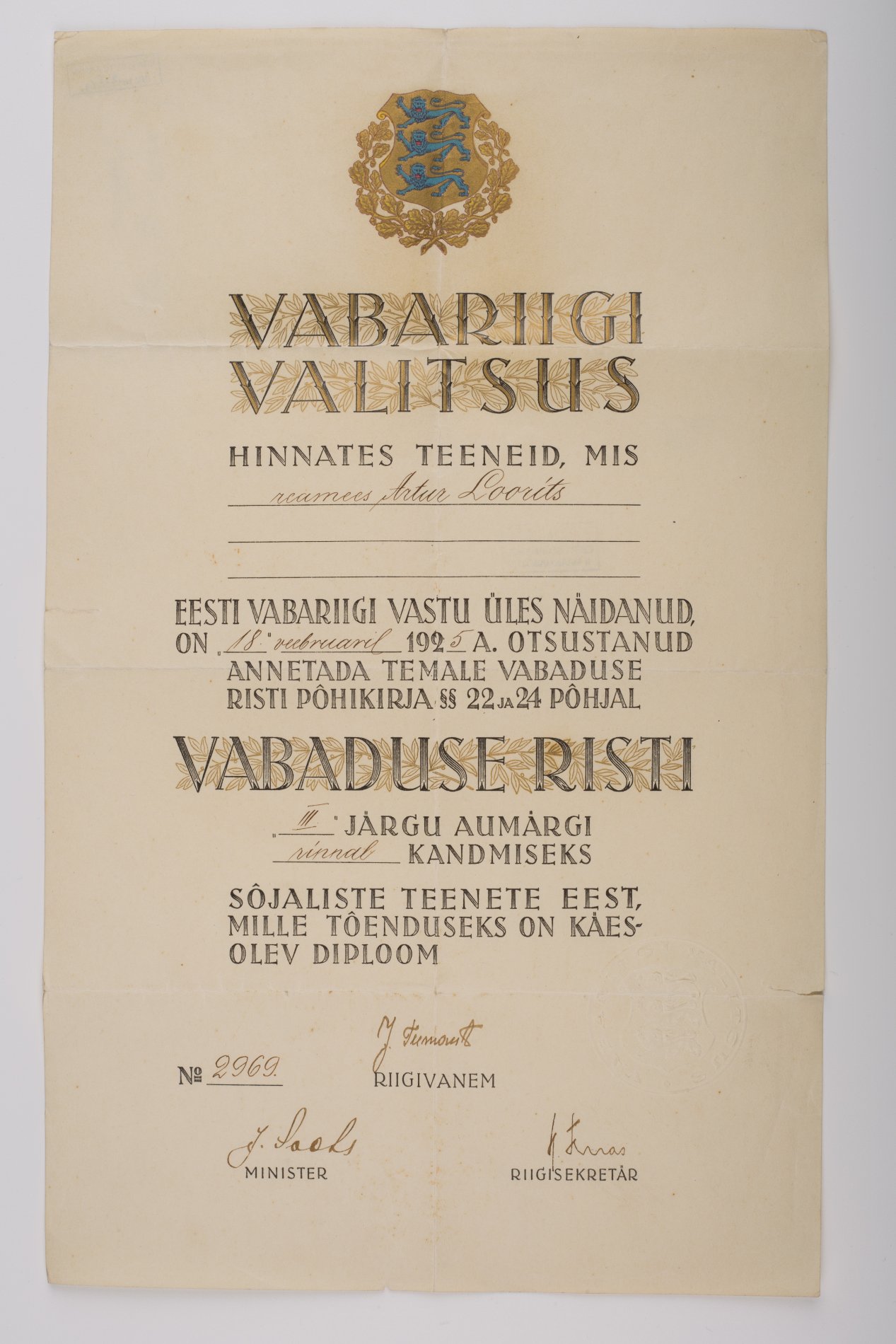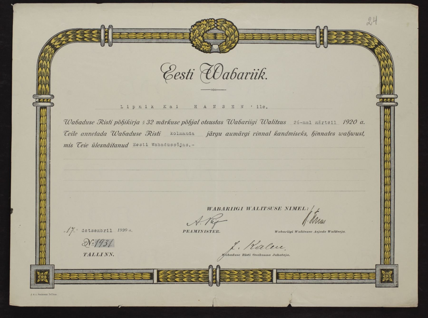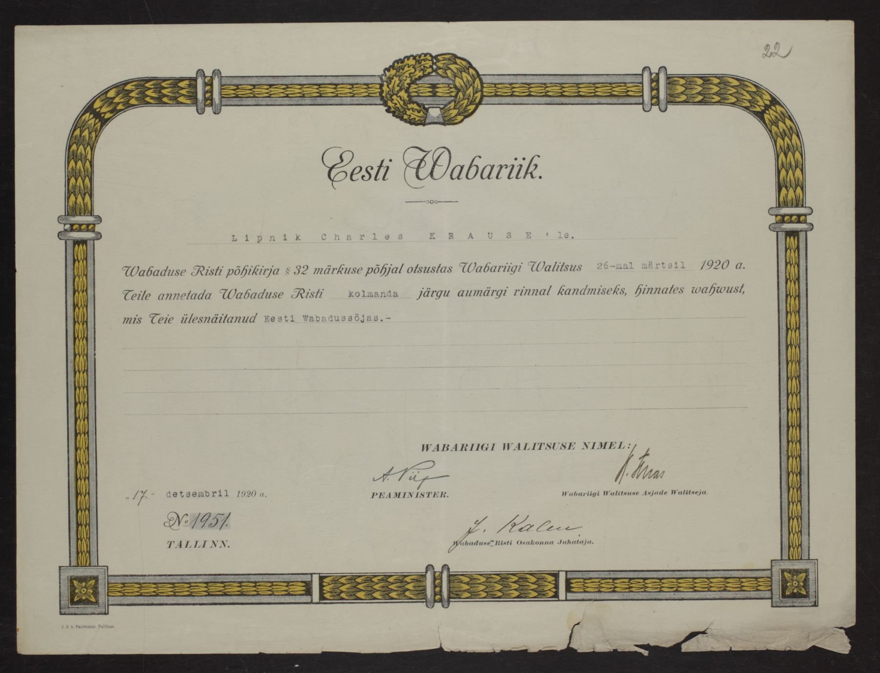 Re: Vabadusristi tunnistused ...