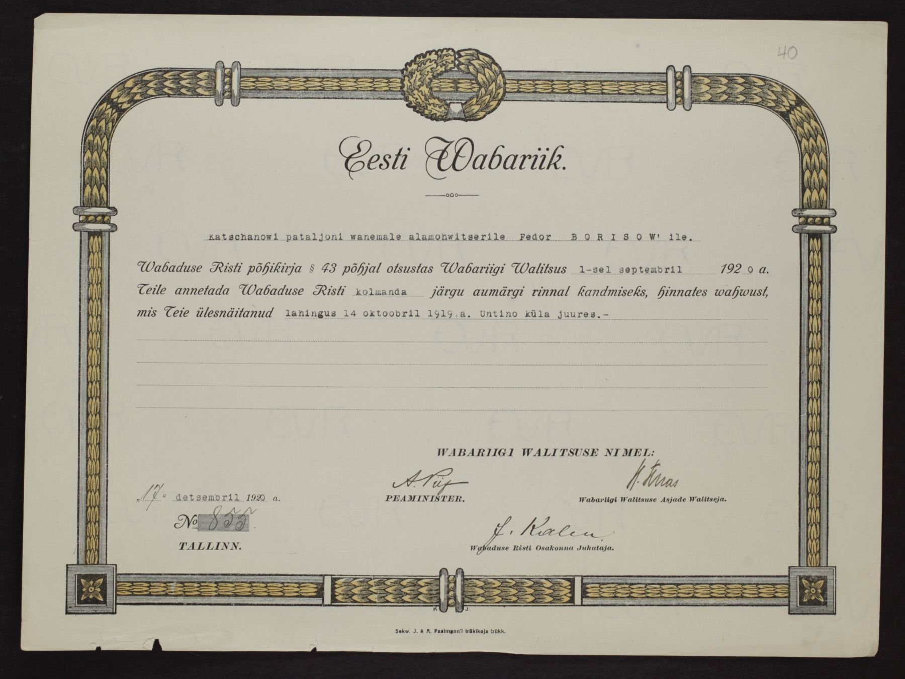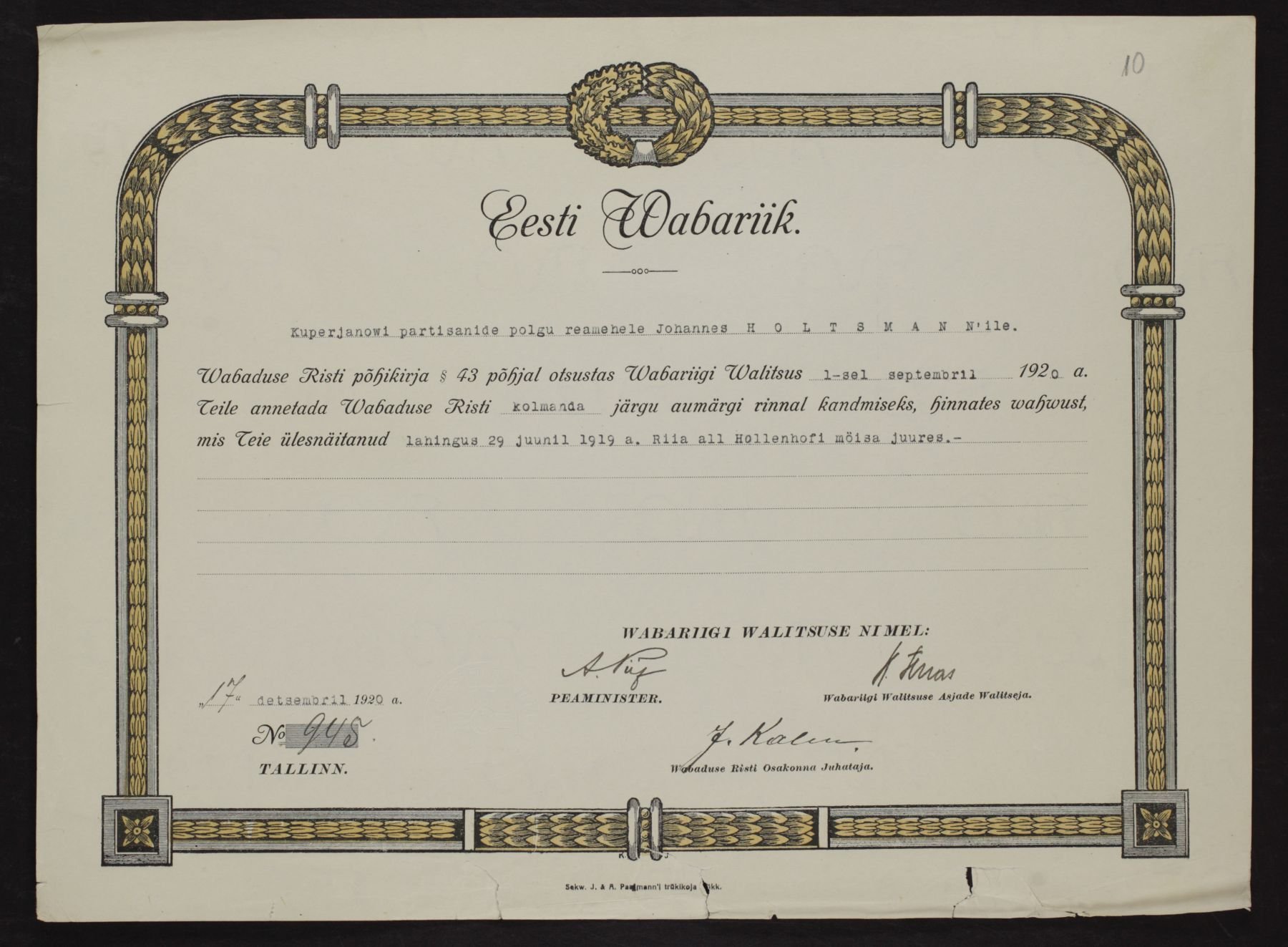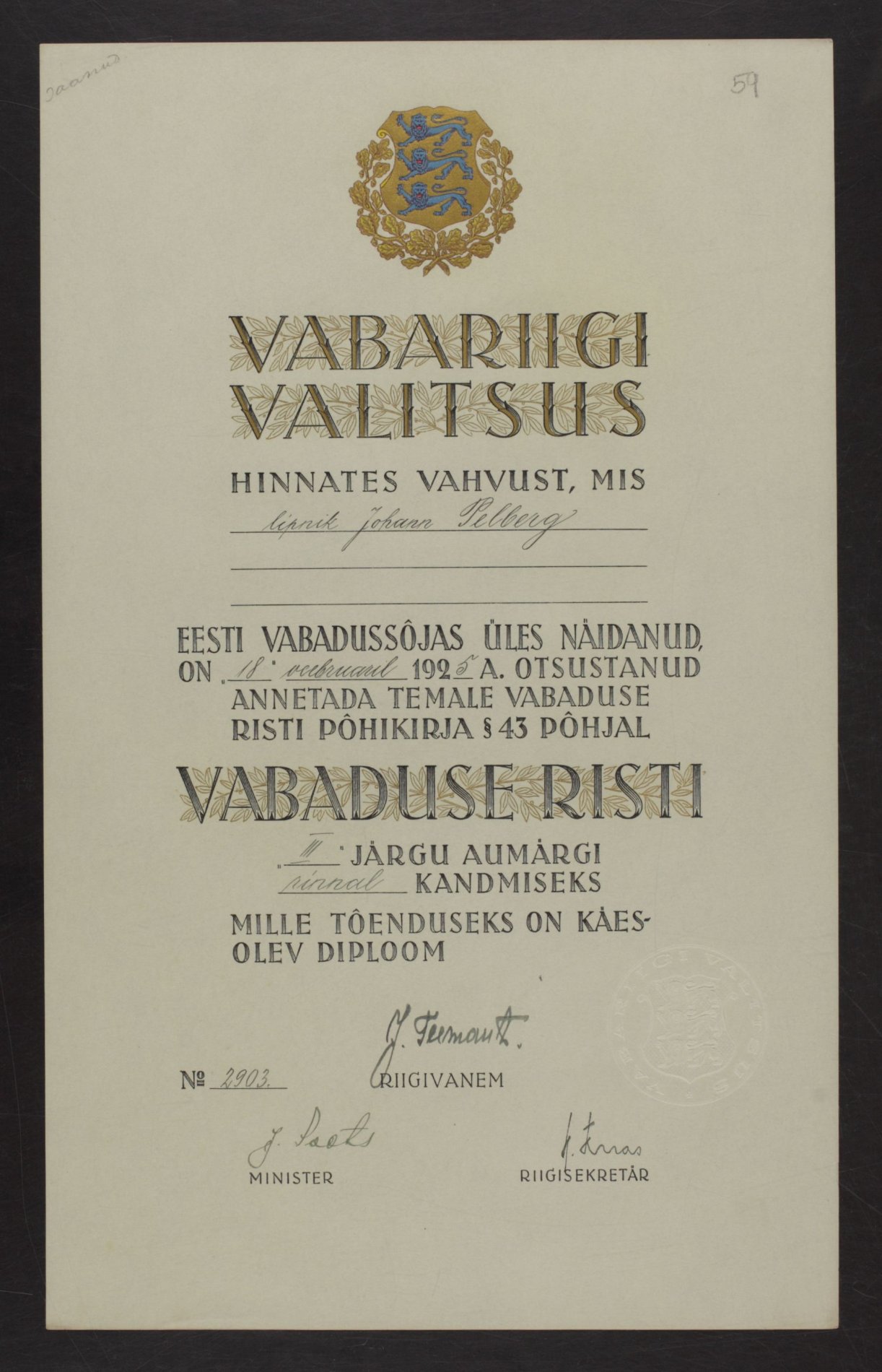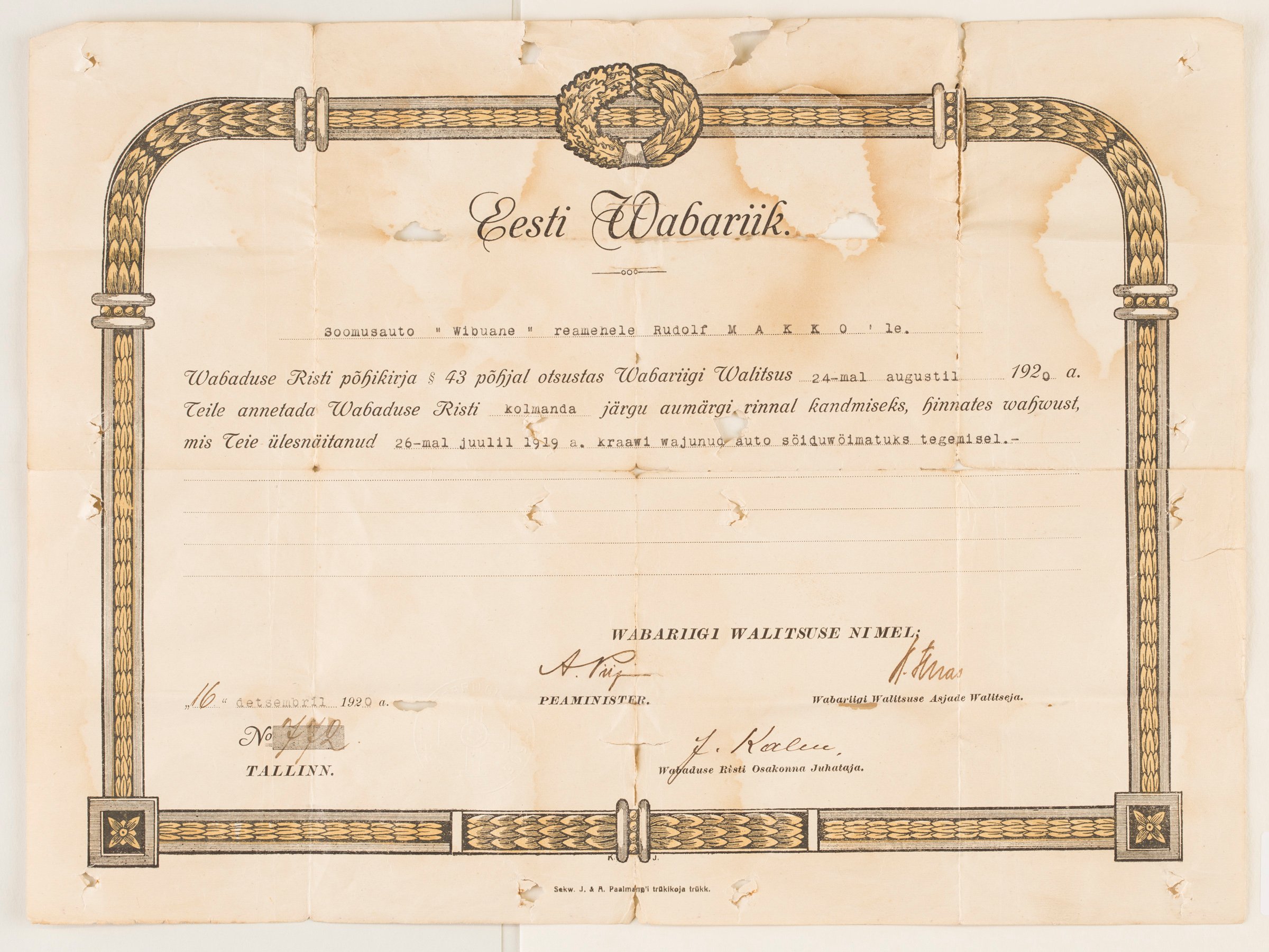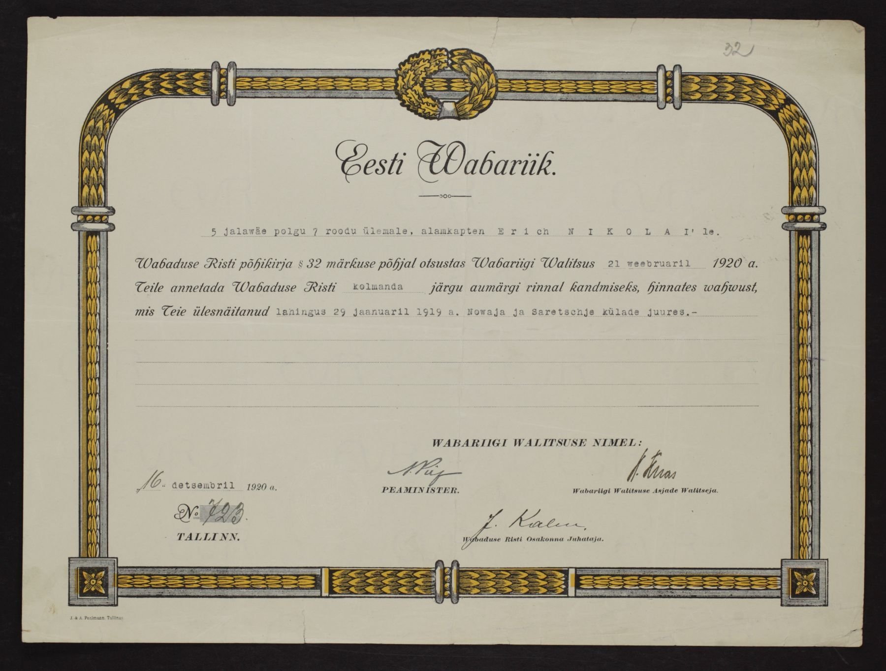 Re: Vabadusristi tunnistused ...