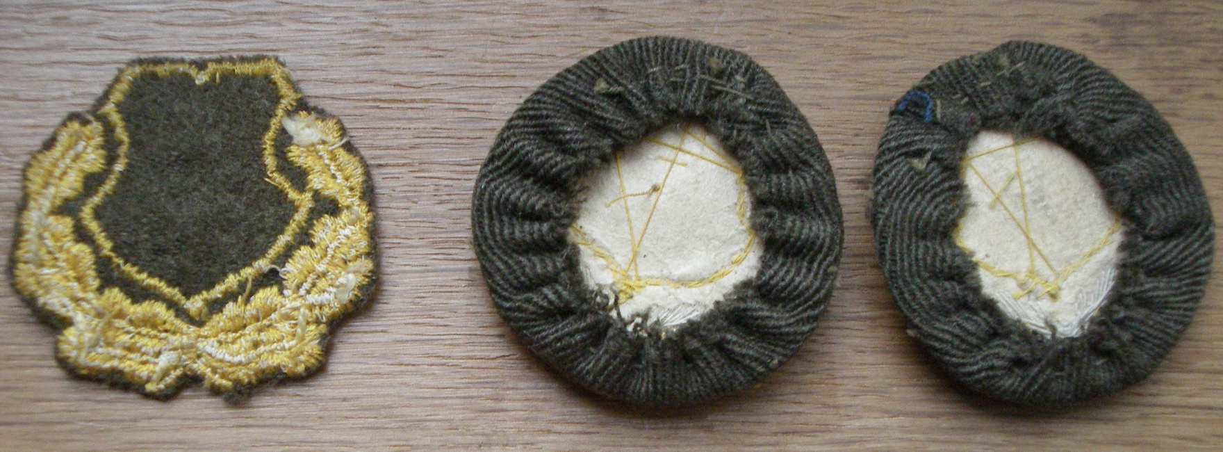 vasakpoolne on 1926.a. üldmärk; keskmine on 1936.a. allohvitseri-üleajateenija tunnus (ohvitseridel olid lehekestega); parempoolne on 1930-31 lennuväe vormikirjeldusest - puudu on vaid üksust tähistav tähekombinatsioon (fotode põhjal saab väita, et kanti ka ilma tähtedeta)