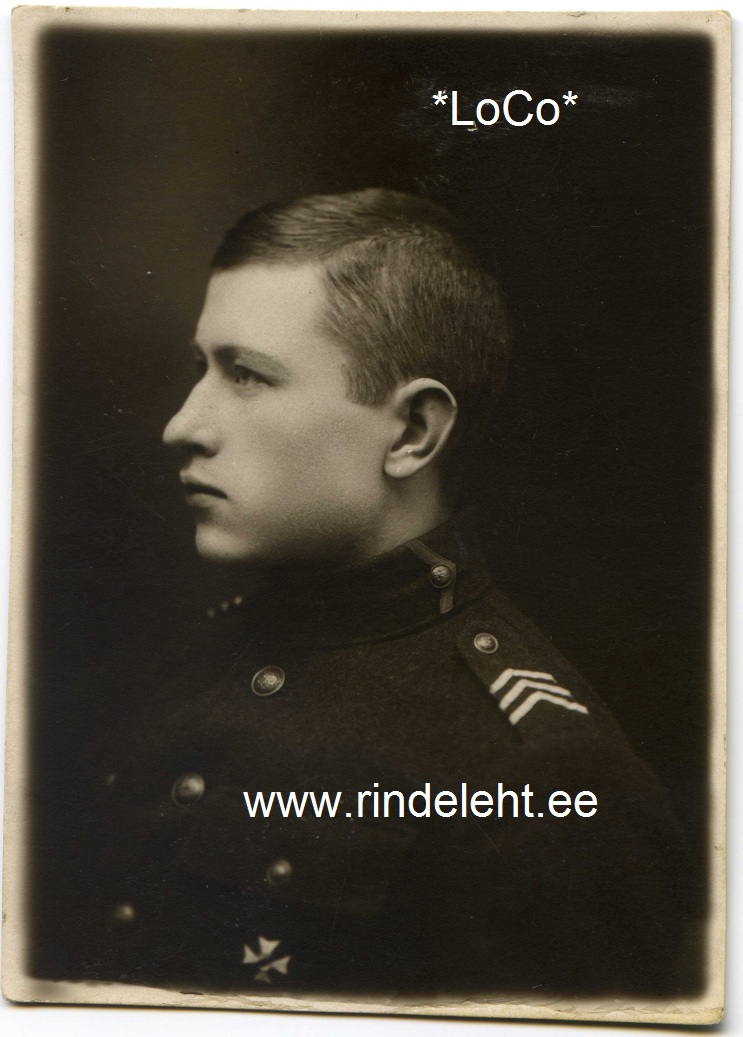 Pildil on 7.jal.rüg. vanemallohvitser K. Bamberg. Taga on veel lisainfo, et mees on velsker ning foto on dateeritud 29. juuni 1928 a.