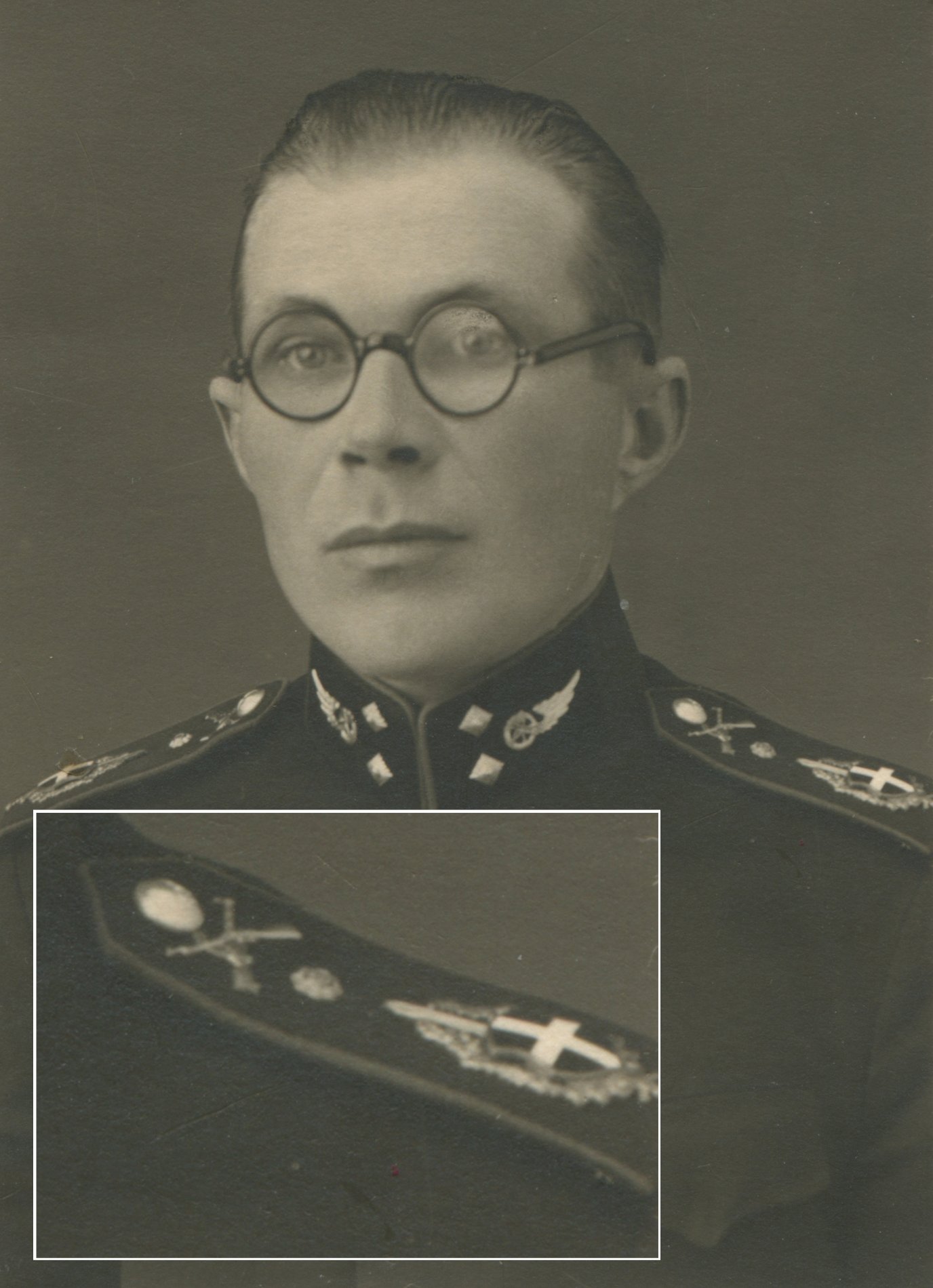 Raudteelase vormikuub ja KL Petseri maleva õlakumärgid.