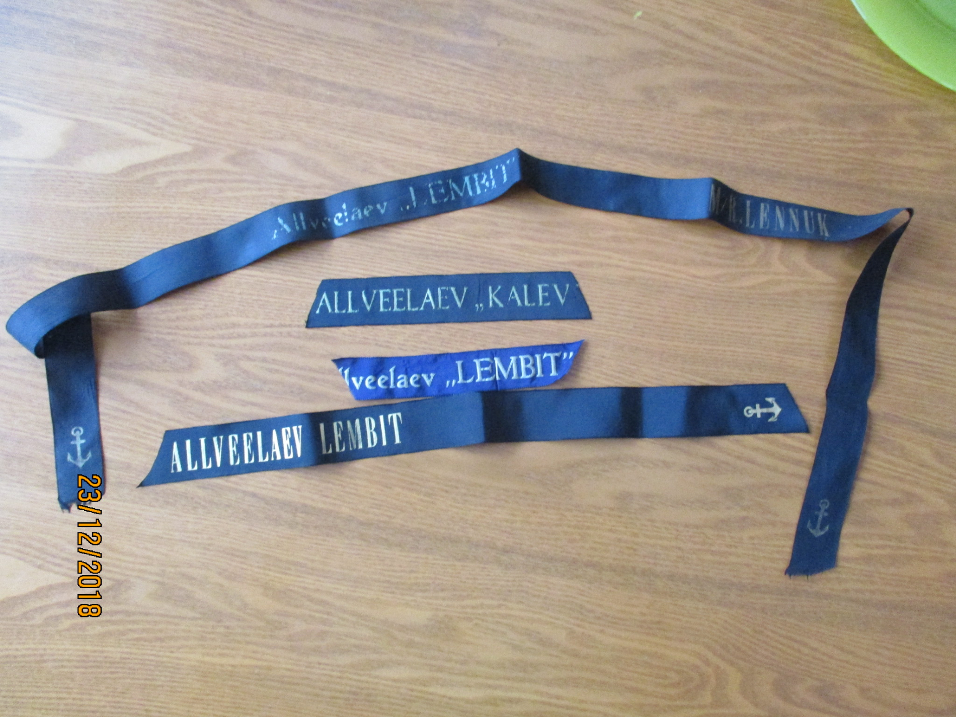 Huvitav lint, mille ühele poolele on trükitud "INE MEREWÄE JAUSKOND" ja teisele poolele "MEREWÄE STAAB".