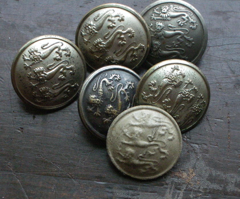 Nööbid kuuel on kumerad, kullakarva, mattpinnalised, läikiva servaga, mis nööpi raamina ümbritseb. Nööbile on muljutud kolme leopardi kumer kujutus. Suurema nööbi diameeter on 2,2cm ja kumeruse raadius 1,4cm; vähema nööbi diameeter on 1,4cm ja kumeruse raadius – 0,8cm. Mõlemad nööbid on püsiva (mitte liikuva) kannaga (aasaga), kusjuures viimane ulatub välja mitte üle nööpimiseks tarvilise määra.