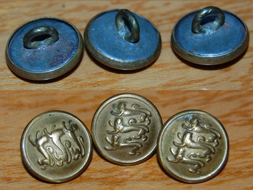 Nööbid: oksüdeeritud vasest. Nööbi peal väljapressitud riigivapp. Nööbi alumine pool sisse pressitud randi sarnaselt, et nööbi serv mitte terav vaid ümmargune oleks. Nööbi alumise poole sees liikuv sang. Nööbi pealmise kumeruse raadius 18-20mm. Suuremate nööpide dm 25mm. Vähemate nööpide dm 15mm.