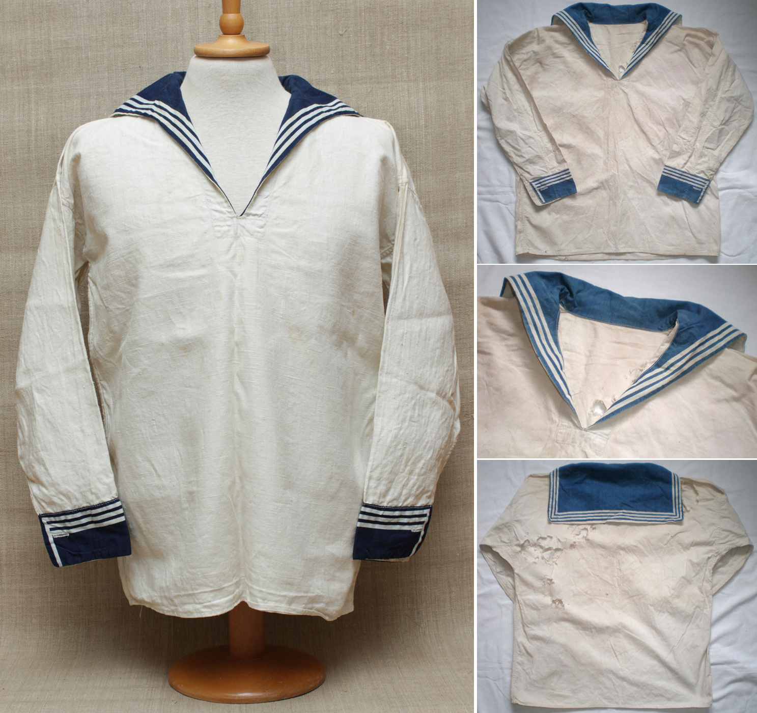 Lisan ka võrdluseks pildi - torso seljas olev pluus on valmistatud enne sõda Punalaevastiku jaoks (templid sees). Selliseid olen ma aastate jooksul Paldiski lähedalt kahest talupidamisest leidnud kokku 6 tk. Teine pluus on natuke erinev ja seda ma nüüd arvan/loodan olema hoopis Eesti mereväe jagu. Kas on äkki kellelgi pilti mõnest samasugusest pluusist, mis on 100% kindlasti EW aegne?