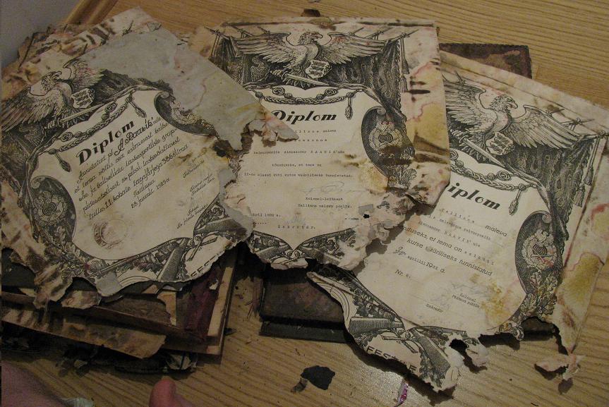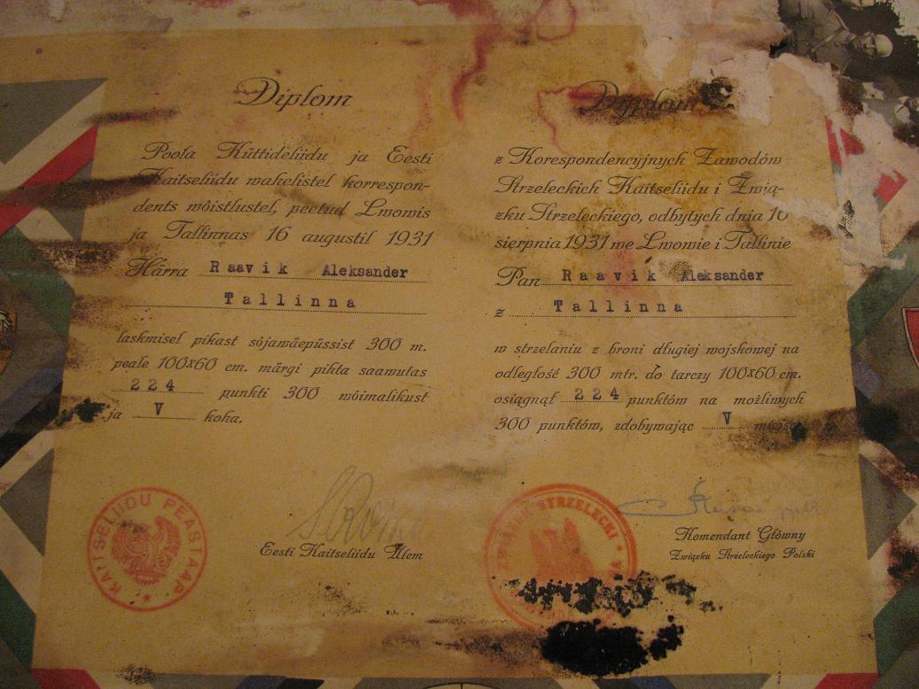 Tugevate kahjustustega Aleksander Raaviku diplomid, tunnistused ja fotod...