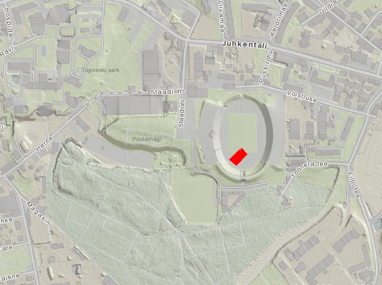 Asus ladu aga tänase Kalevi staadioni alal. Umbes-täpselt punasega märgitud kohal: