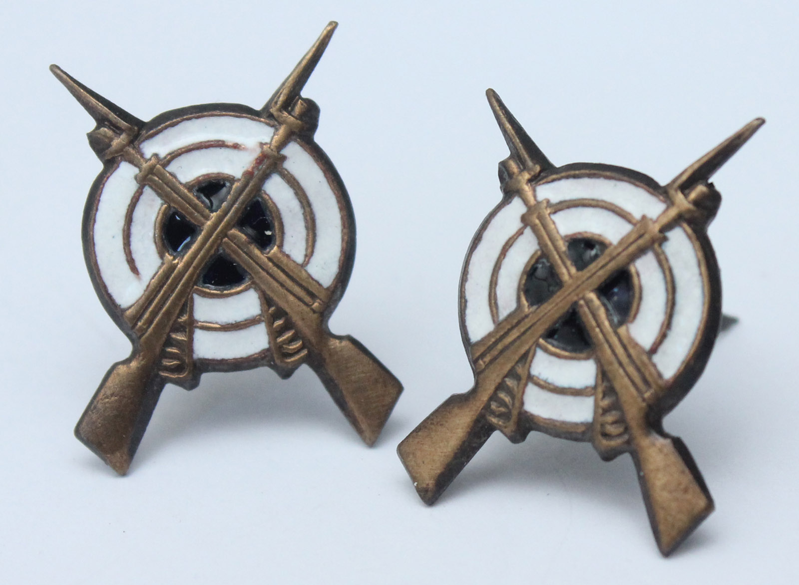 Sõjaaegsetel märkidel on vintpüssid saledamad ja kinnitusklambrid ei olnud sellised laiad . Sellised märgid olid vist kasutusel siseministeeriumi all töötavatel väravavalvuritel NSVL-i ajal .